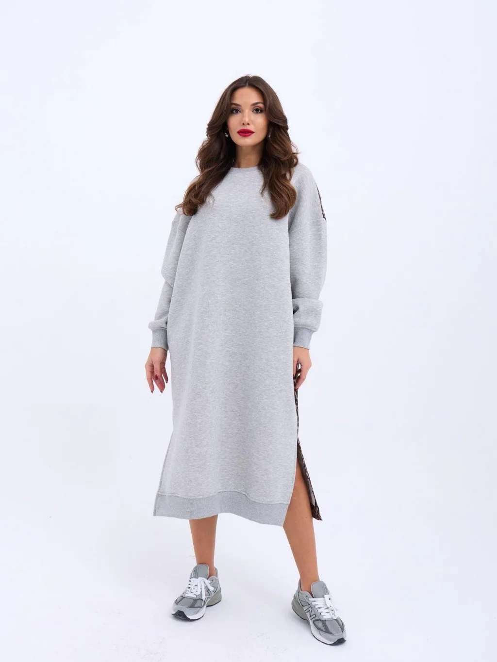 Kadın Uzun Kollu Bisiklet Yaka Kısa Viskon Iki Iplik Elbise