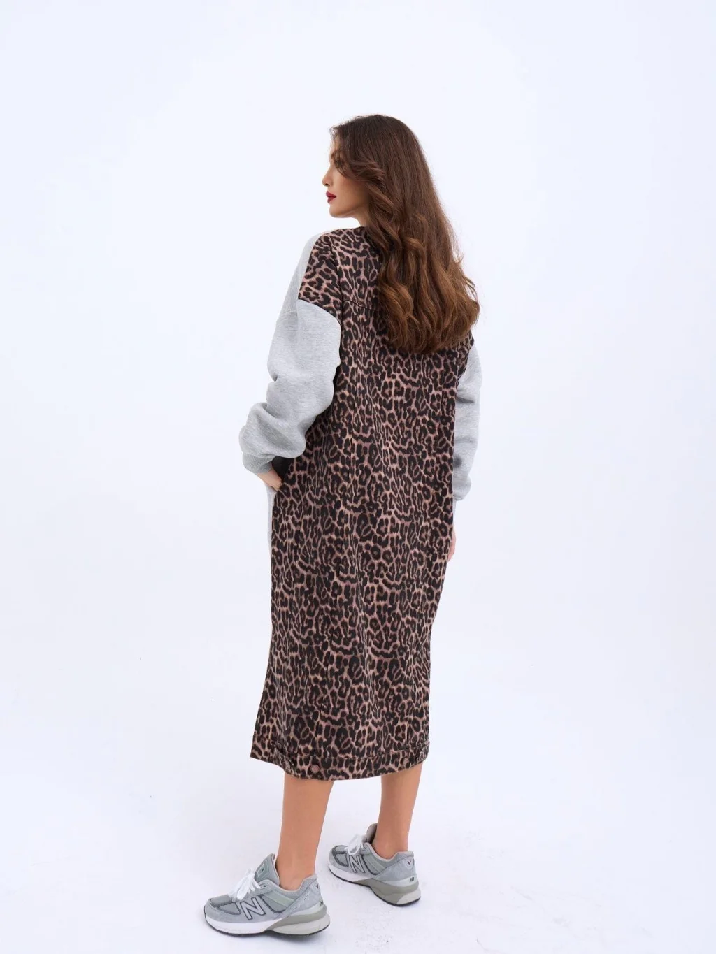 Kadın Uzun Kollu Yarı Balıkçı Yaka Leopar Detaylı Kaşkorse Bluz