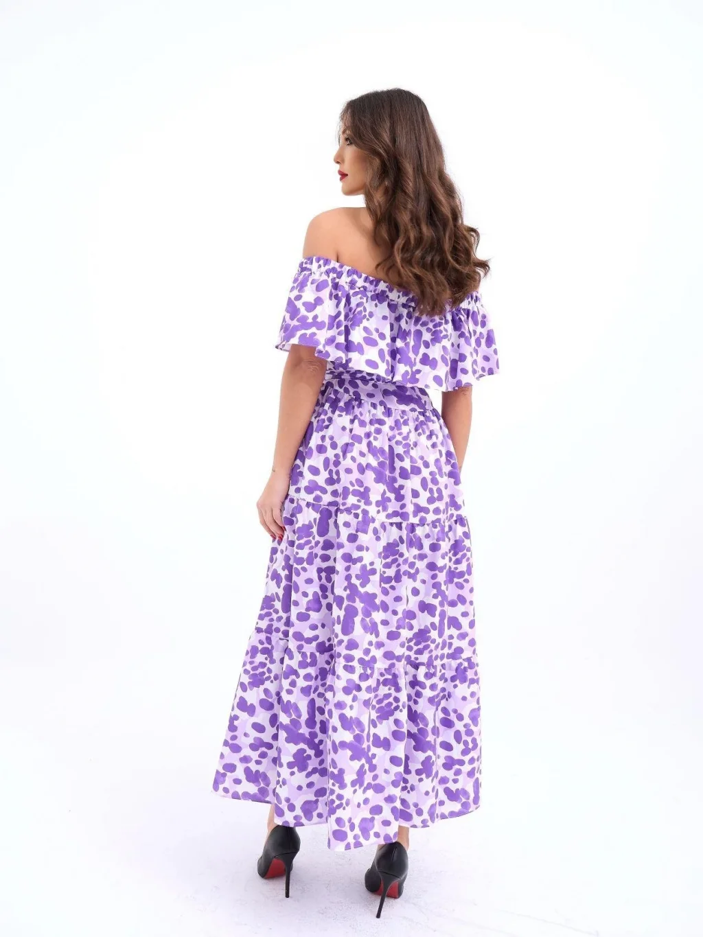 Kadın Uzun Kollu Kruvaze Yakalı Fırfırlı Belden Kuşaklı Leopar Desen Modal Elbise