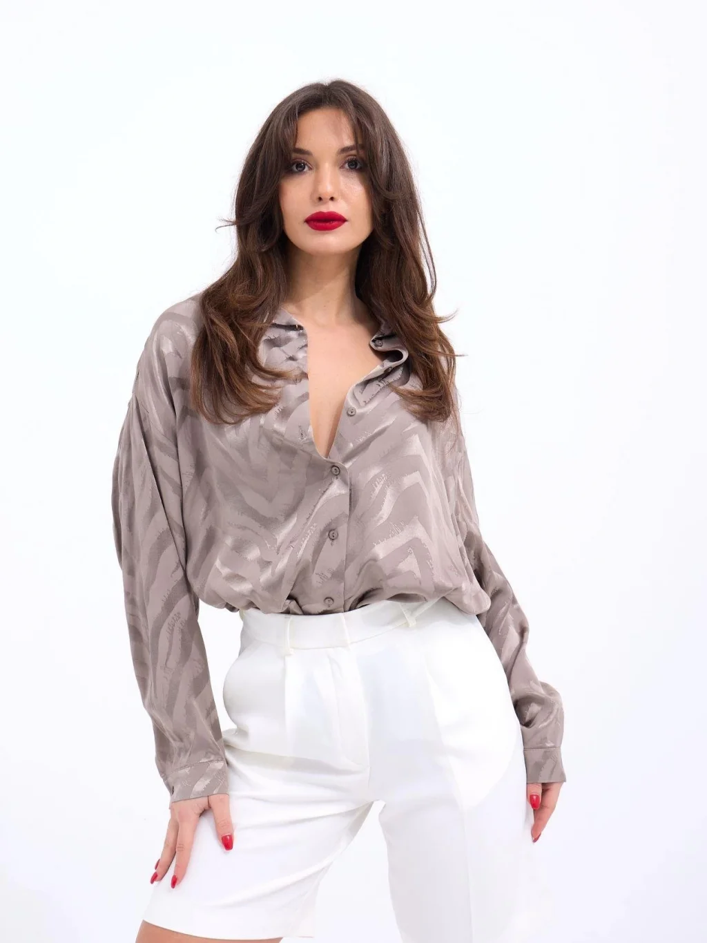 Kadın Dokuma Viskon Kumaş V Yaka Dekolte Ve Metal Düğme Detaylı Gömlek