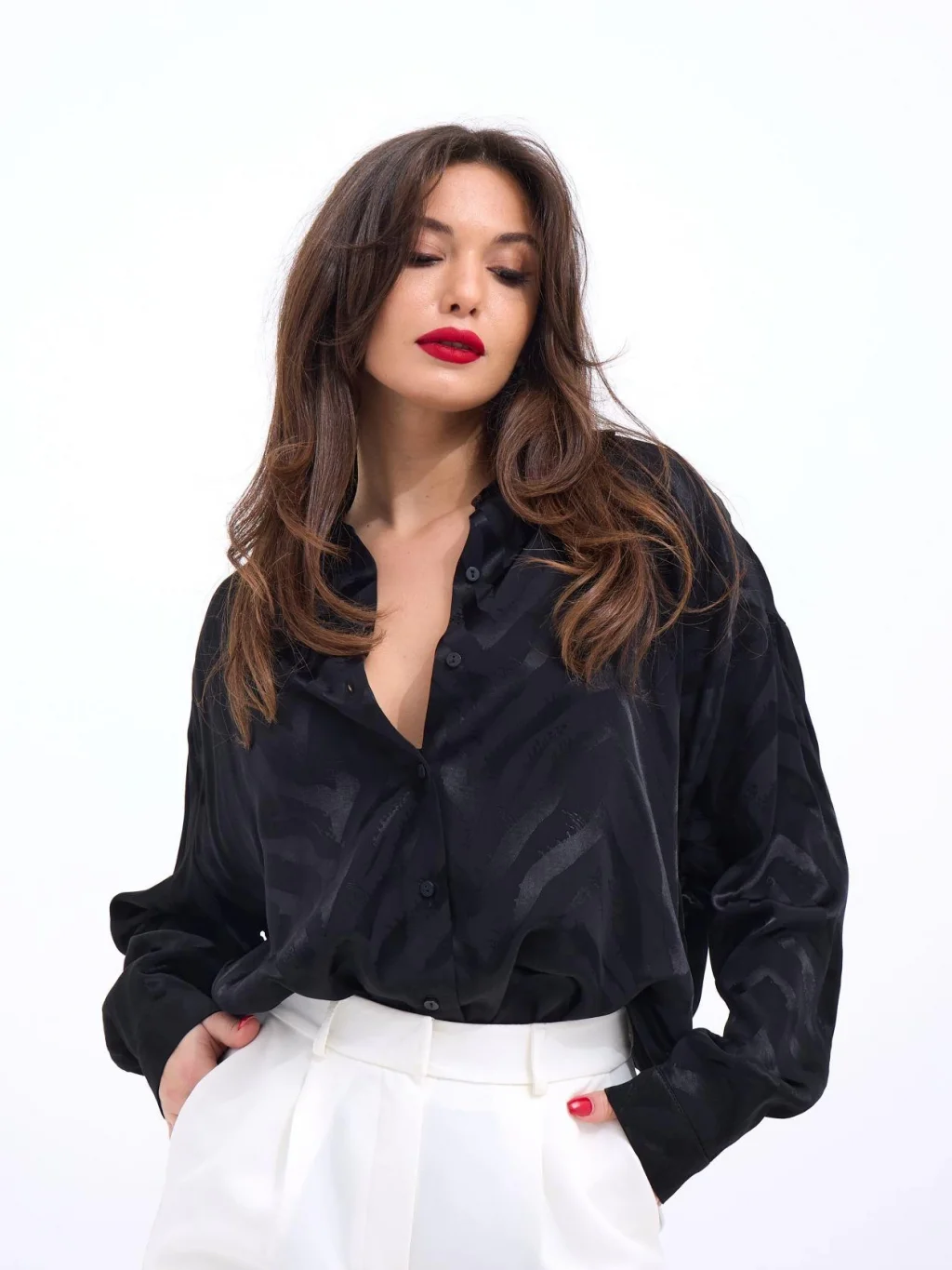 Kadın Dokuma Viskon Kumaş V Yaka Dekolte Ve Metal Düğme Detaylı Gömlek