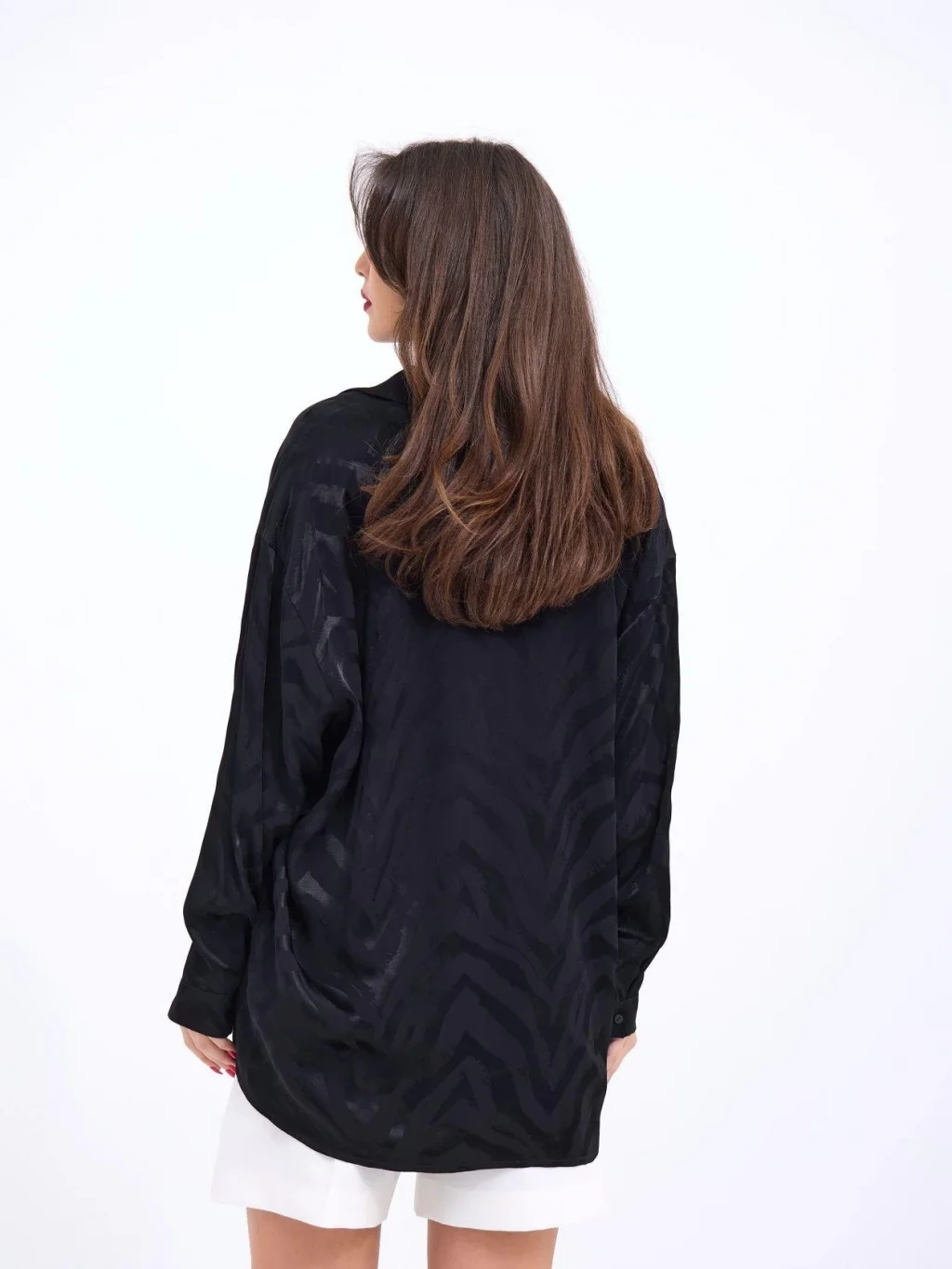 Kadın Uzun Kol Cep Detay Leopar Baskılı Mosskrep Kumaş Gömlek