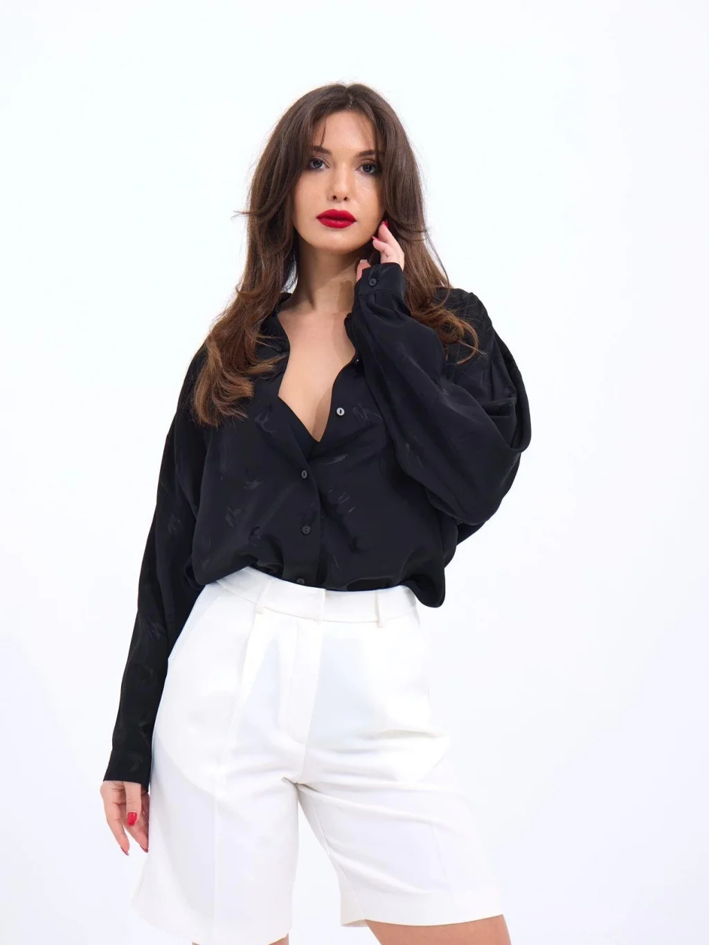 Kadın Dokuma Viskon Kumaş V Yaka Dekolte Ve Metal Düğme Detaylı Gömlek