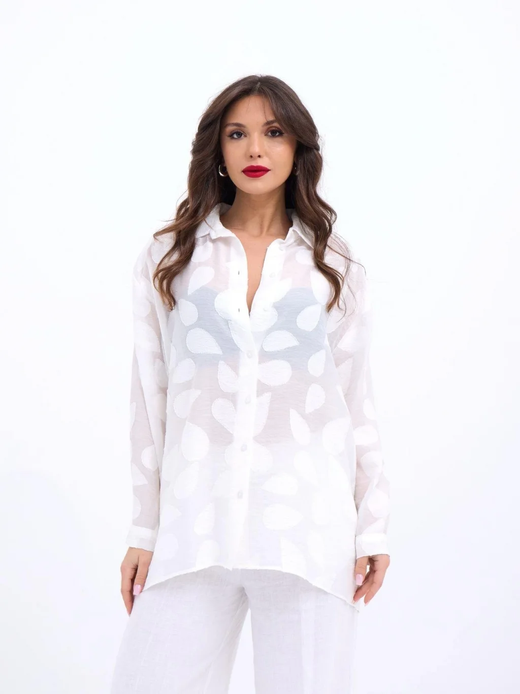 Kadın Dokuma Viskon Kumaş V Yaka Dekolte Ve Metal Düğme Detaylı Gömlek
