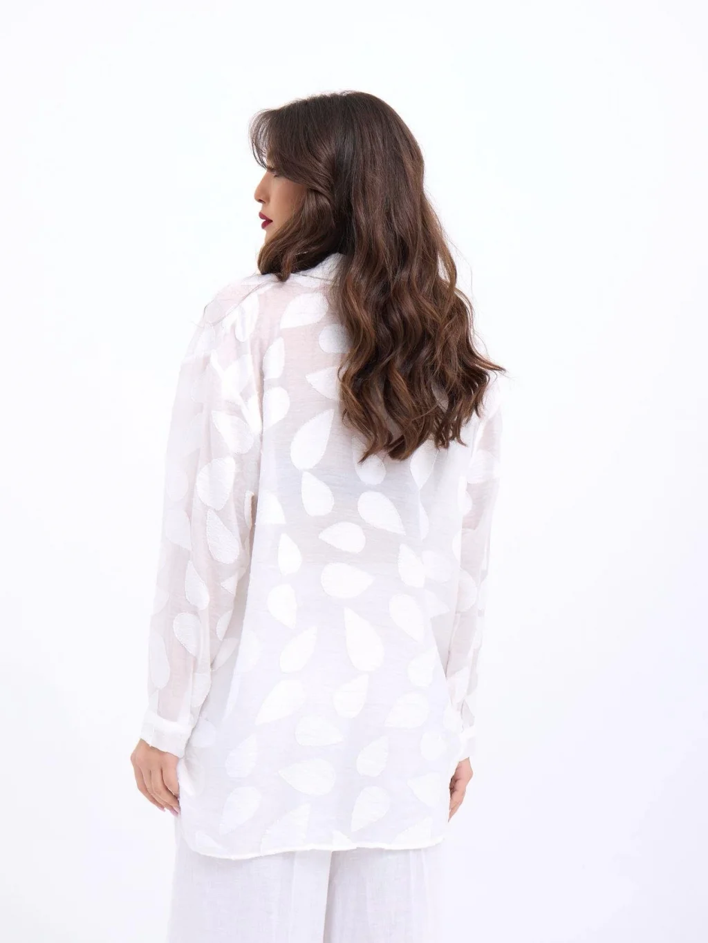 Kadın Uzun Kol Cep Detay Leopar Baskılı Mosskrep Kumaş Gömlek