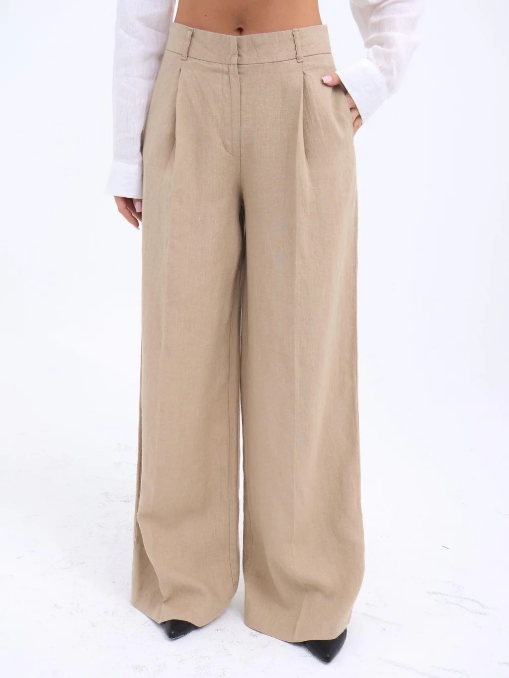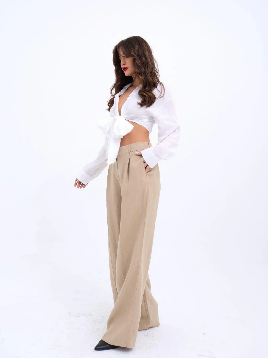 Kadın Yüksek Bel Yanları Volanlı Cepli Sandy Pantolon