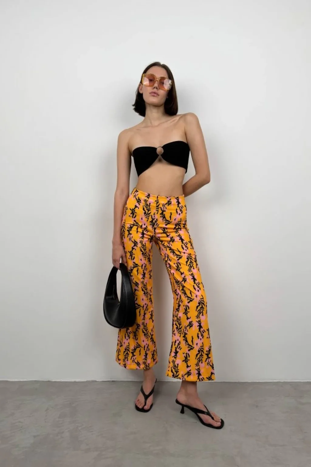 Kadın Yüksek Bel İspanyol Paçalı Yanlardan şerit Detaylı Dalgıç Tayt Pantolon