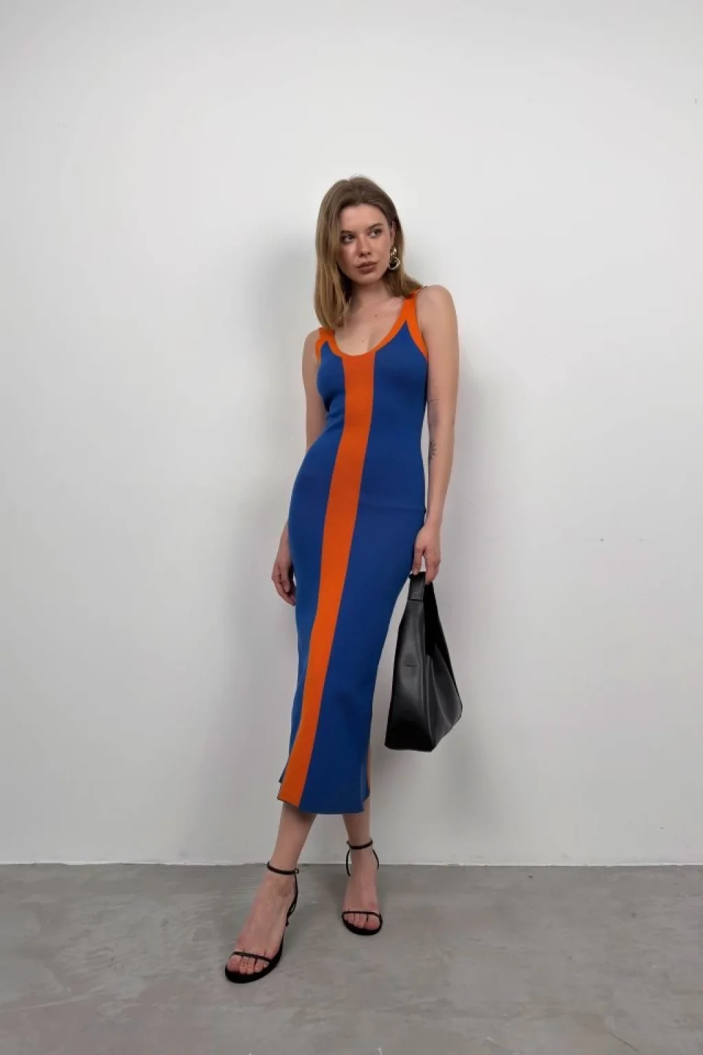 Çift Renk Yırtmaç Detay Elbise