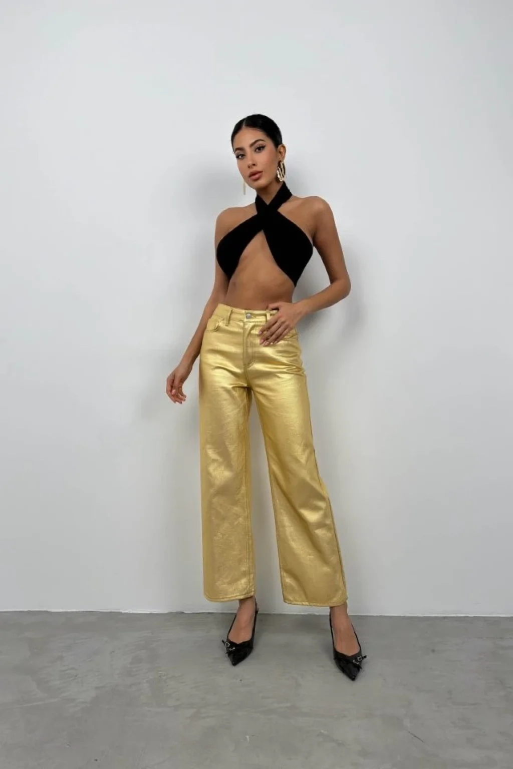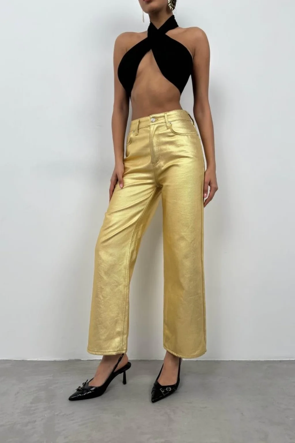 Metalik Yüksek Bel Pantolon
