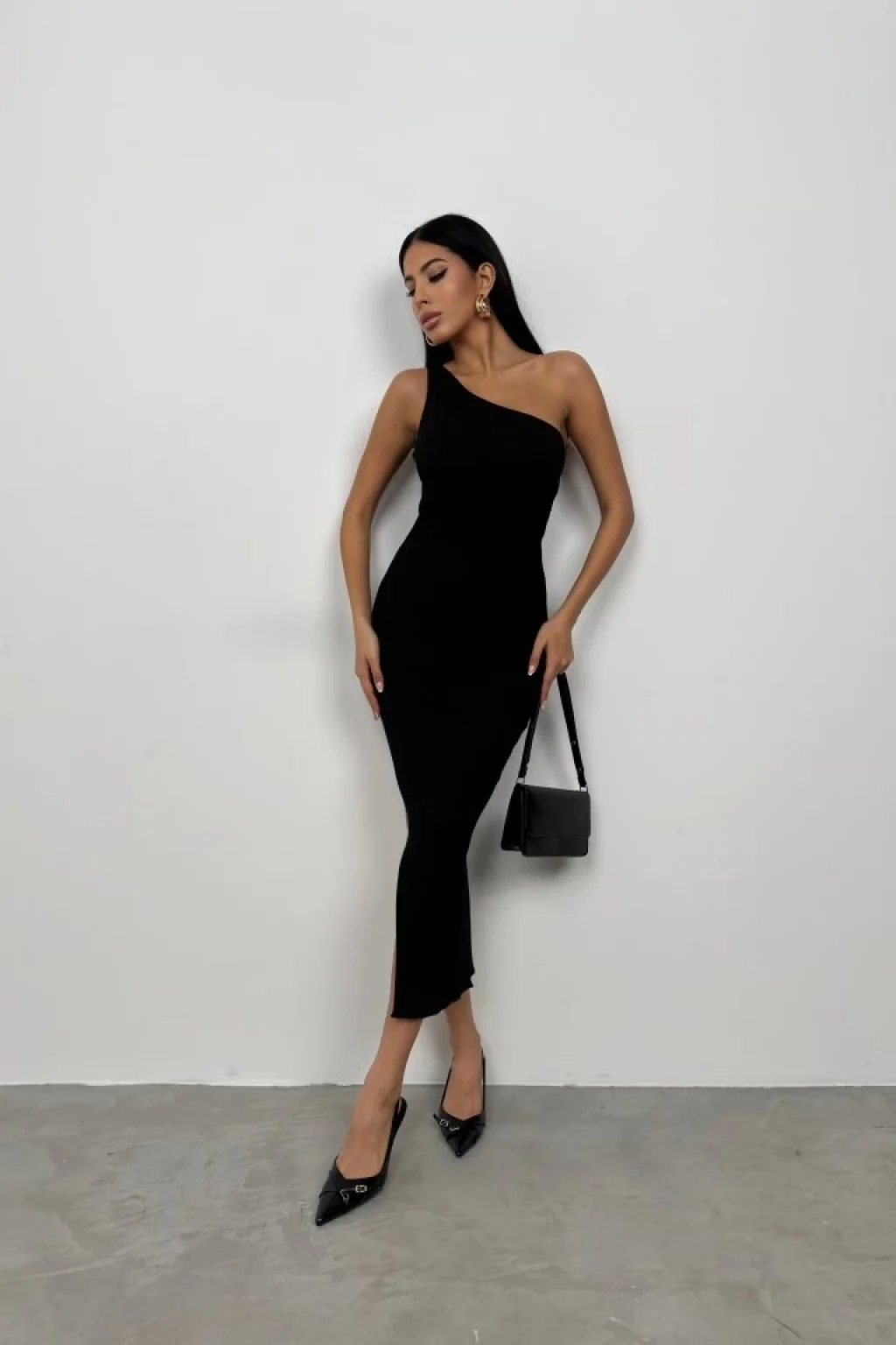 <p>Yırtmaç Detay Tek Omuz Elbise</p><br> <p>Modelin Ölçüleri: Boy:165, Kg:55, Göğüs:90, Bel:72, Kalça: 100</p><br> <p>Modelin üzerindeki ürün M/38 bedendir</p><br> <ul> </ul>