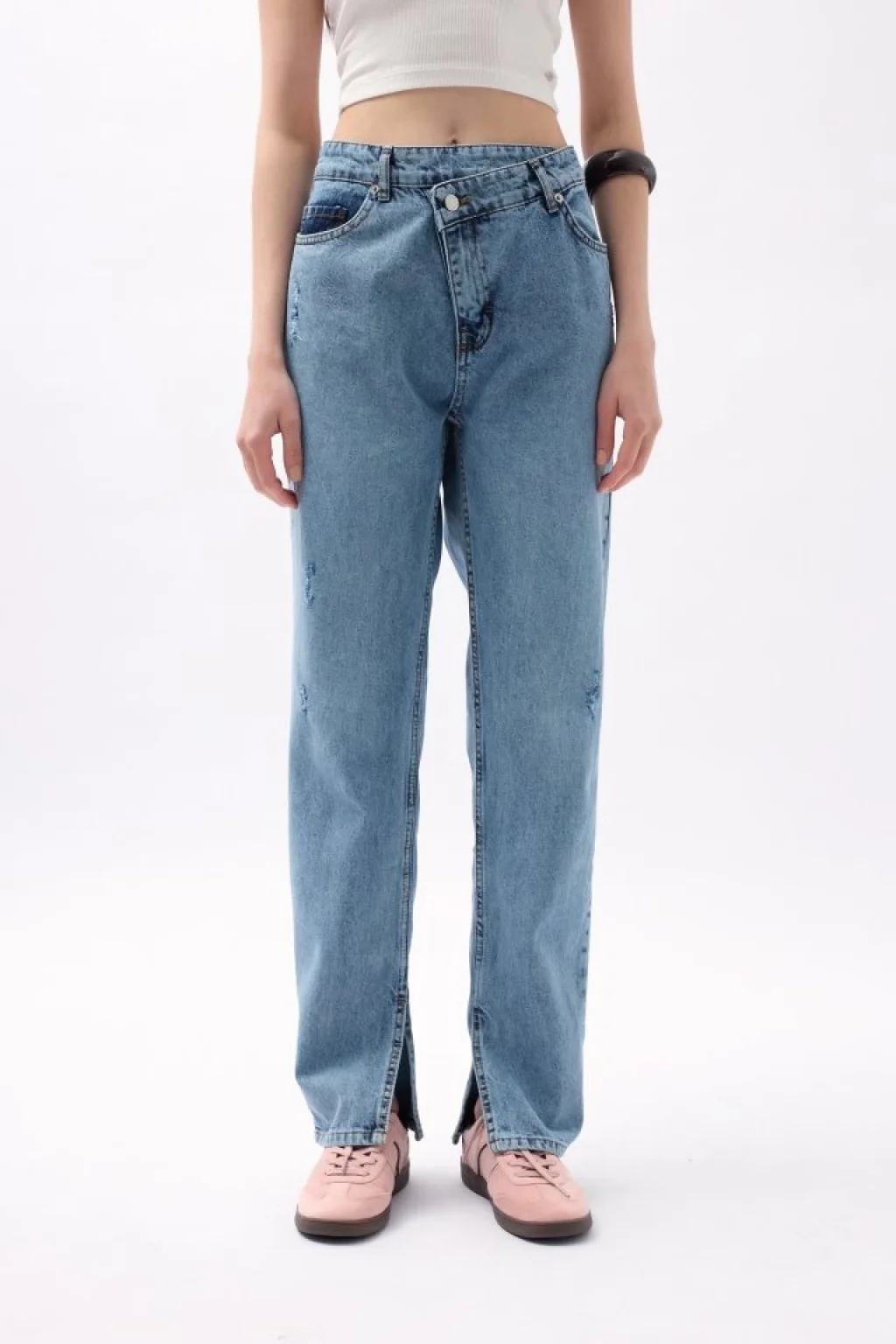 Asimetrik Bel Paça Yırtmaçlı Jean