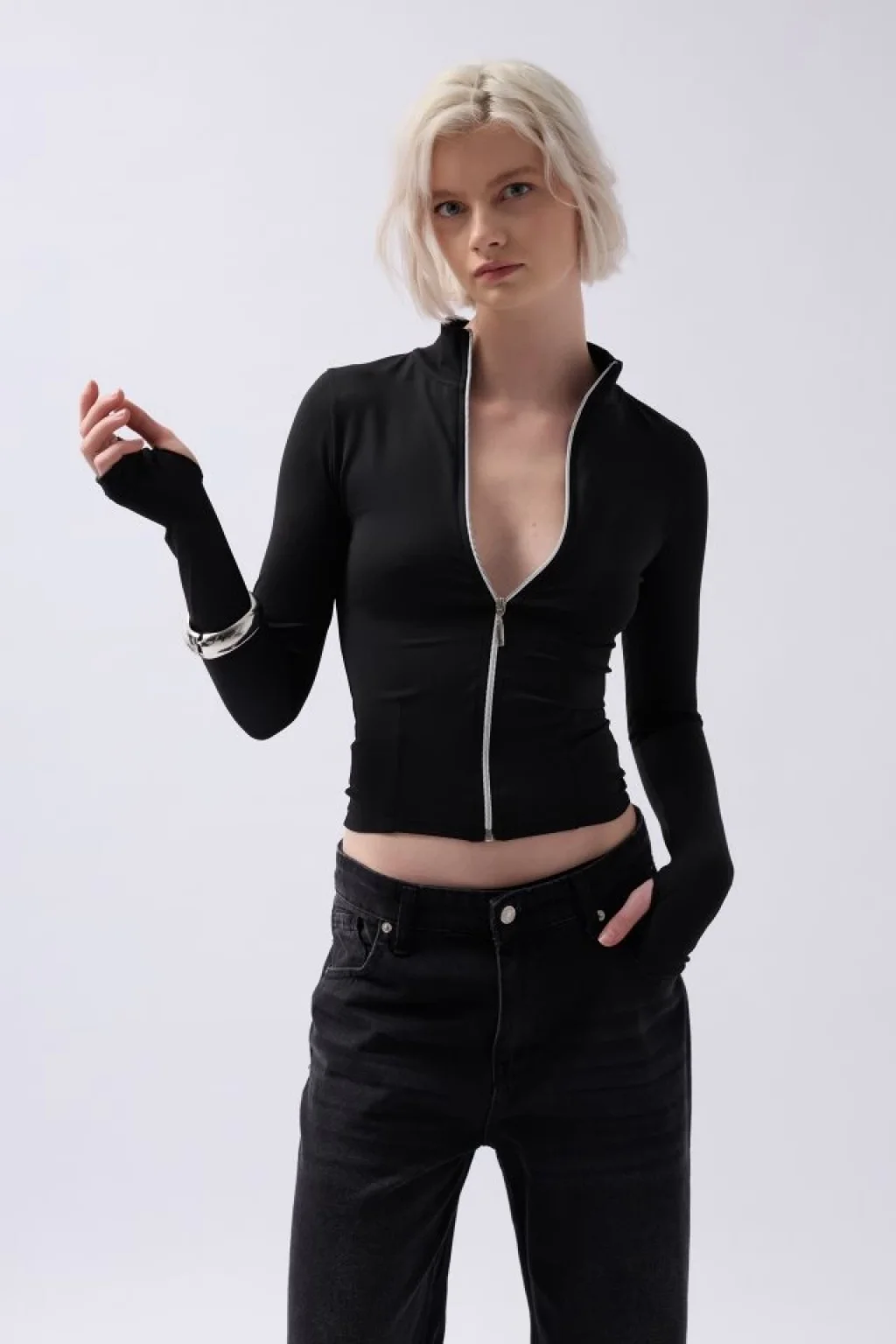 <p>Fermuar Detaylı Bluz</p><br> <p>Modelin Ölçüleri: Boy:165, Kg:55, Göğüs:90, Bel:72, Kalça: 100</p><br> <p>Modelin üzerindeki ürün M/38 bedendir</p><br> <ul> </ul>