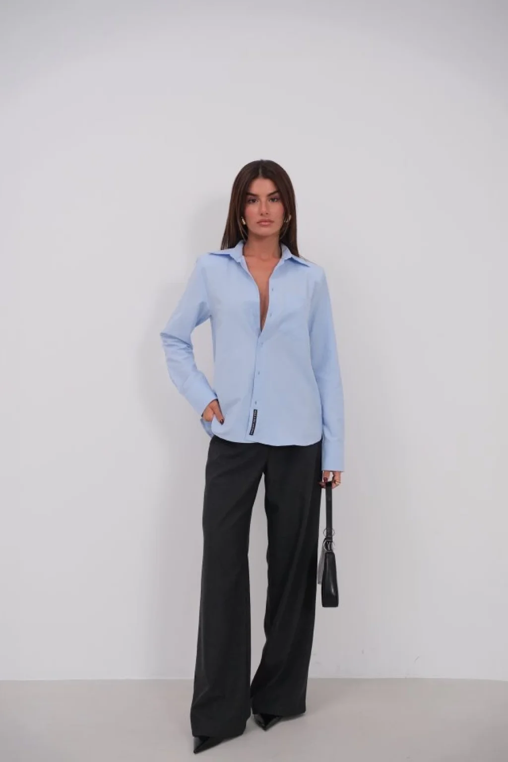 Kadın Dokuma Viskon Kumaş V Yaka Dekolte Ve Metal Düğme Detaylı Gömlek