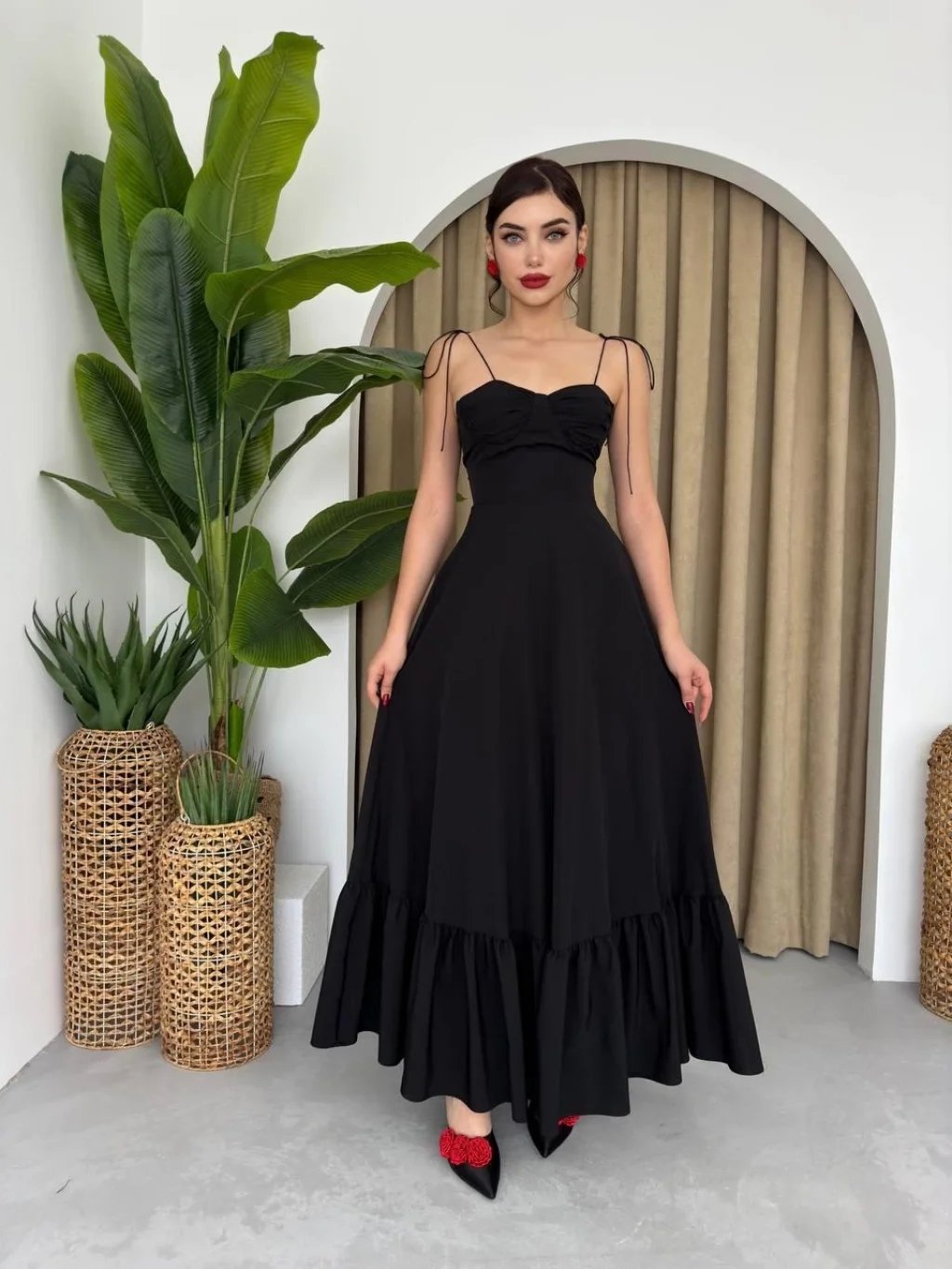 <p>Elia İp Askılı Elbise</p><br> <p>Modelin Ölçüleri: Boy:165, Kg:55, Göğüs:90, Bel:72, Kalça: 100</p><br> <p>Modelin üzerindeki ürün M/38 bedendir</p><br> <ul> </ul>