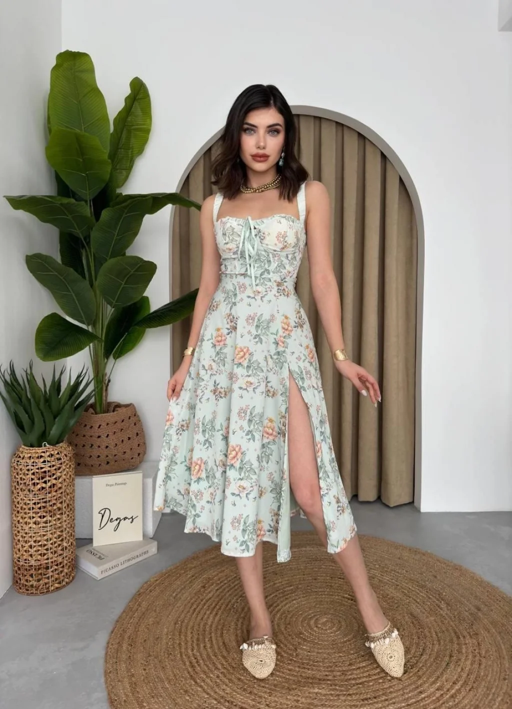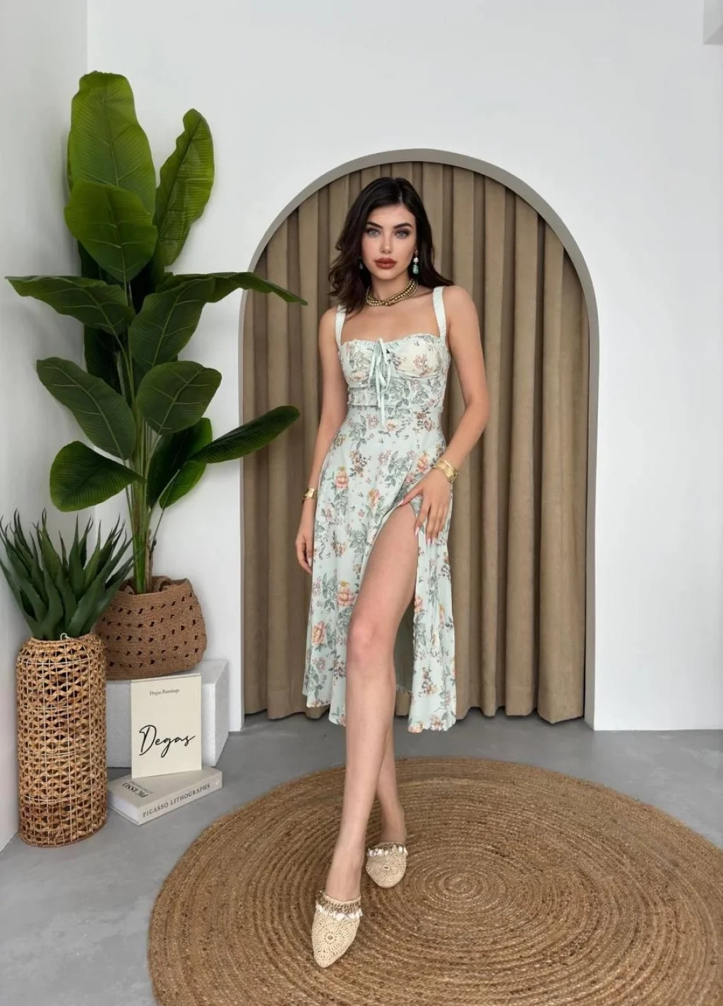 <p>Anjelik Yırtmaç Detaylı Elbise</p><br> <p>Modelin Ölçüleri: Boy:165, Kg:55, Göğüs:90, Bel:72, Kalça: 100</p><br> <p>Modelin üzerindeki ürün M/38 bedendir</p><br> <ul> </ul>