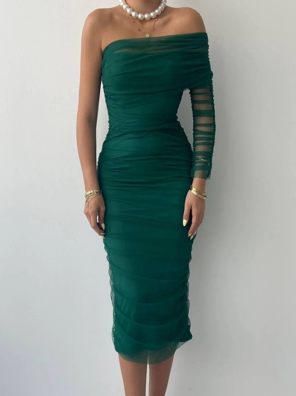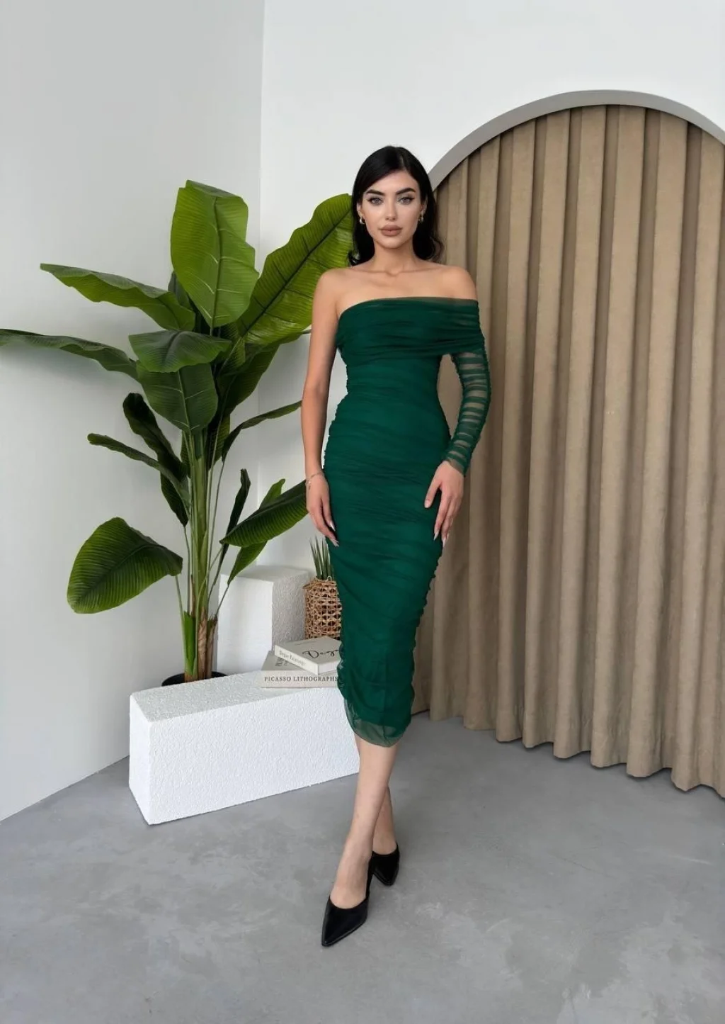 <p>Polack Tek Omuz Tül Elbise</p><br> <p>Modelin Ölçüleri: Boy:165, Kg:55, Göğüs:90, Bel:72, Kalça: 100</p><br> <p>Modelin üzerindeki ürün M/38 bedendir</p><br> <ul> </ul>