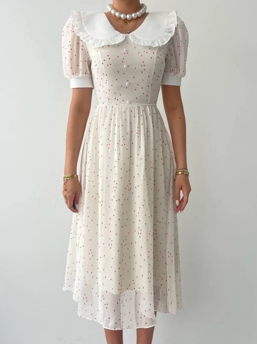 Kadın Uzun Kollu Yakalı Yandan Bağlamalı Mini Desenli Modal Elbise