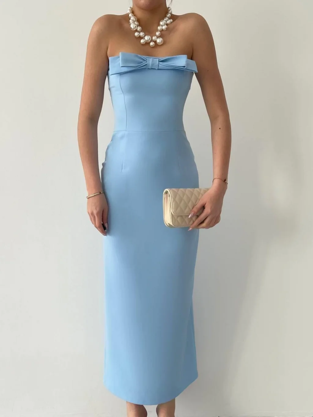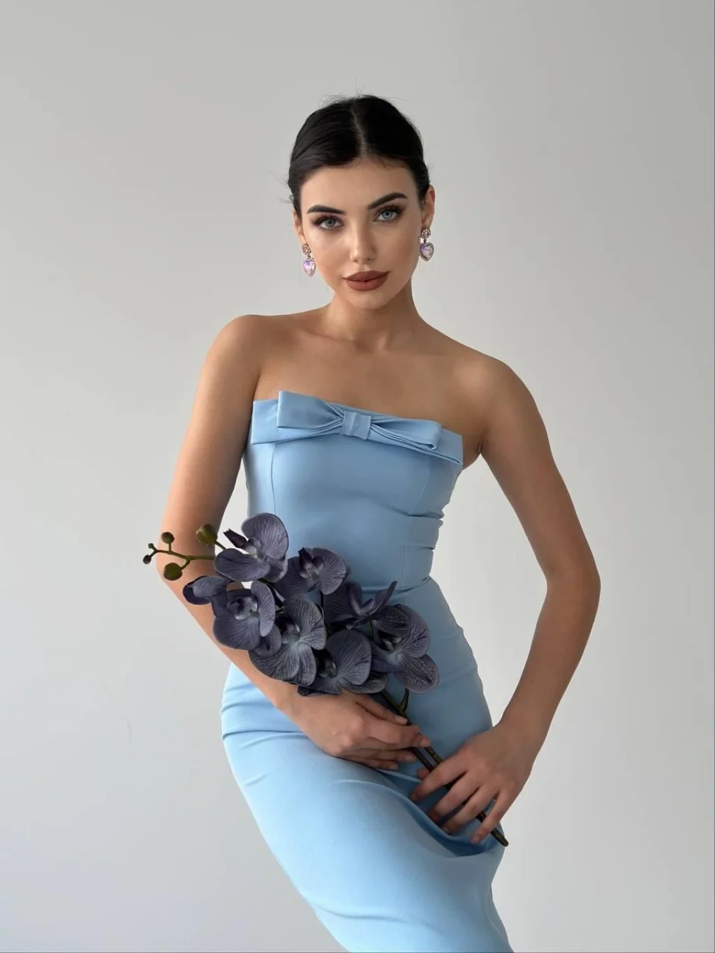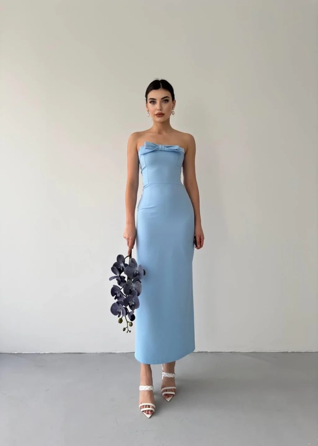 Kadın Kolları Tül Detay Omuz Dekolteli Diz üstü Kalem Elbise