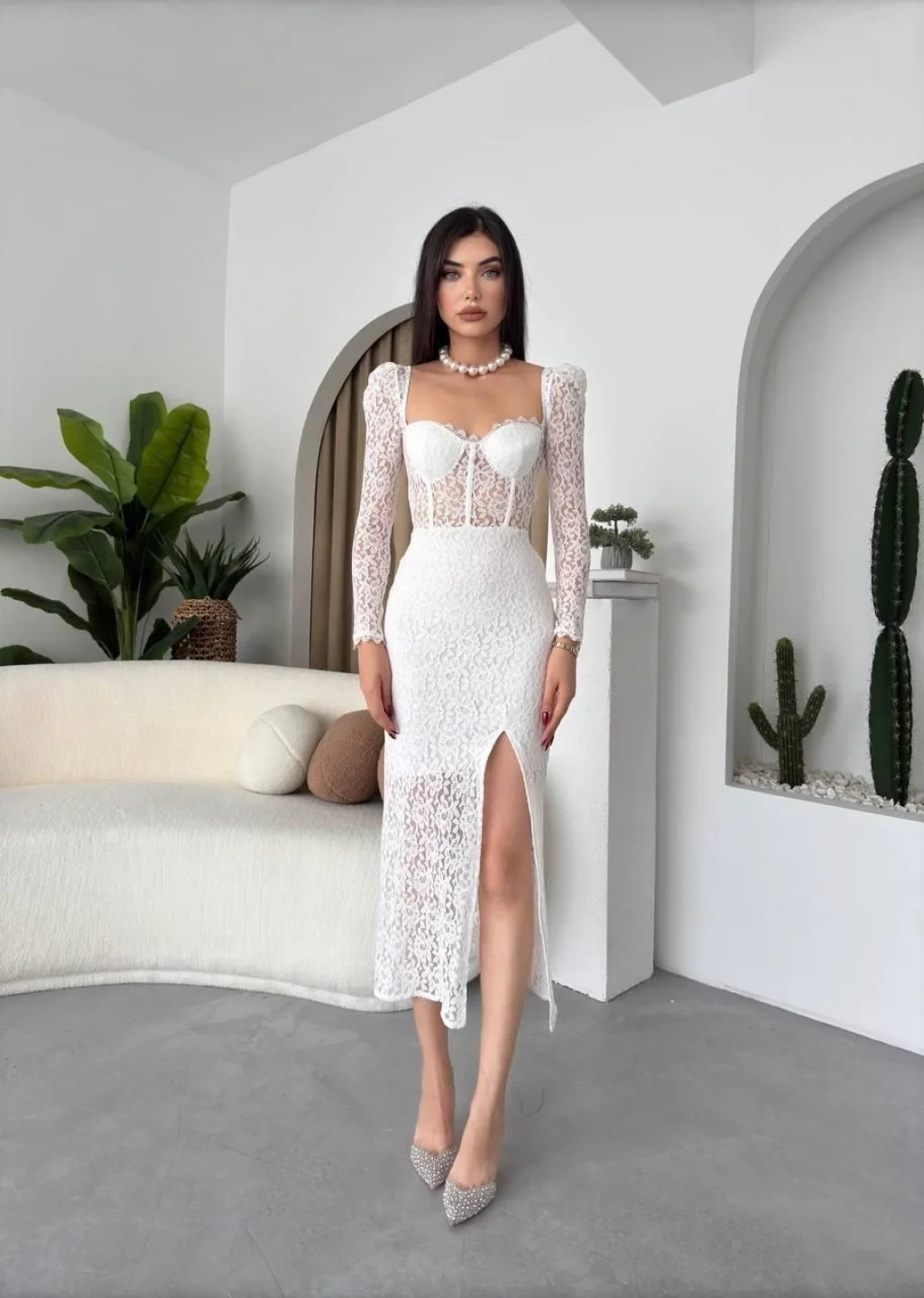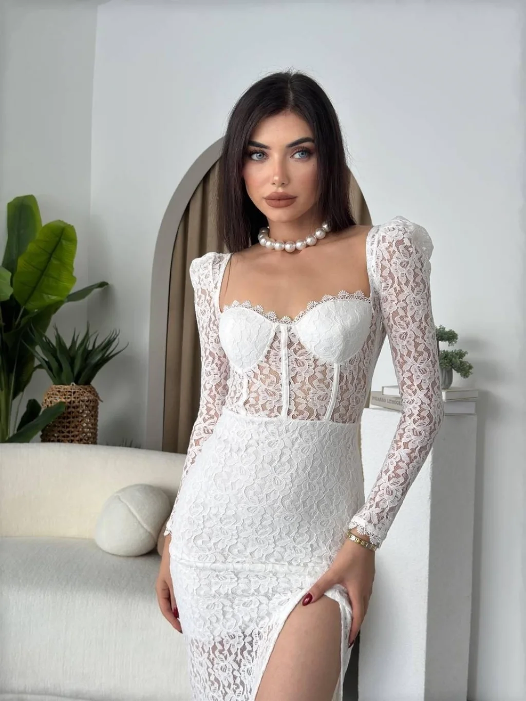<p>Siena Dantel Elbise</p><br> <p>Modelin Ölçüleri: Boy:165, Kg:55, Göğüs:90, Bel:72, Kalça: 100</p><br> <p>Modelin üzerindeki ürün M/38 bedendir</p><br> <ul> </ul>