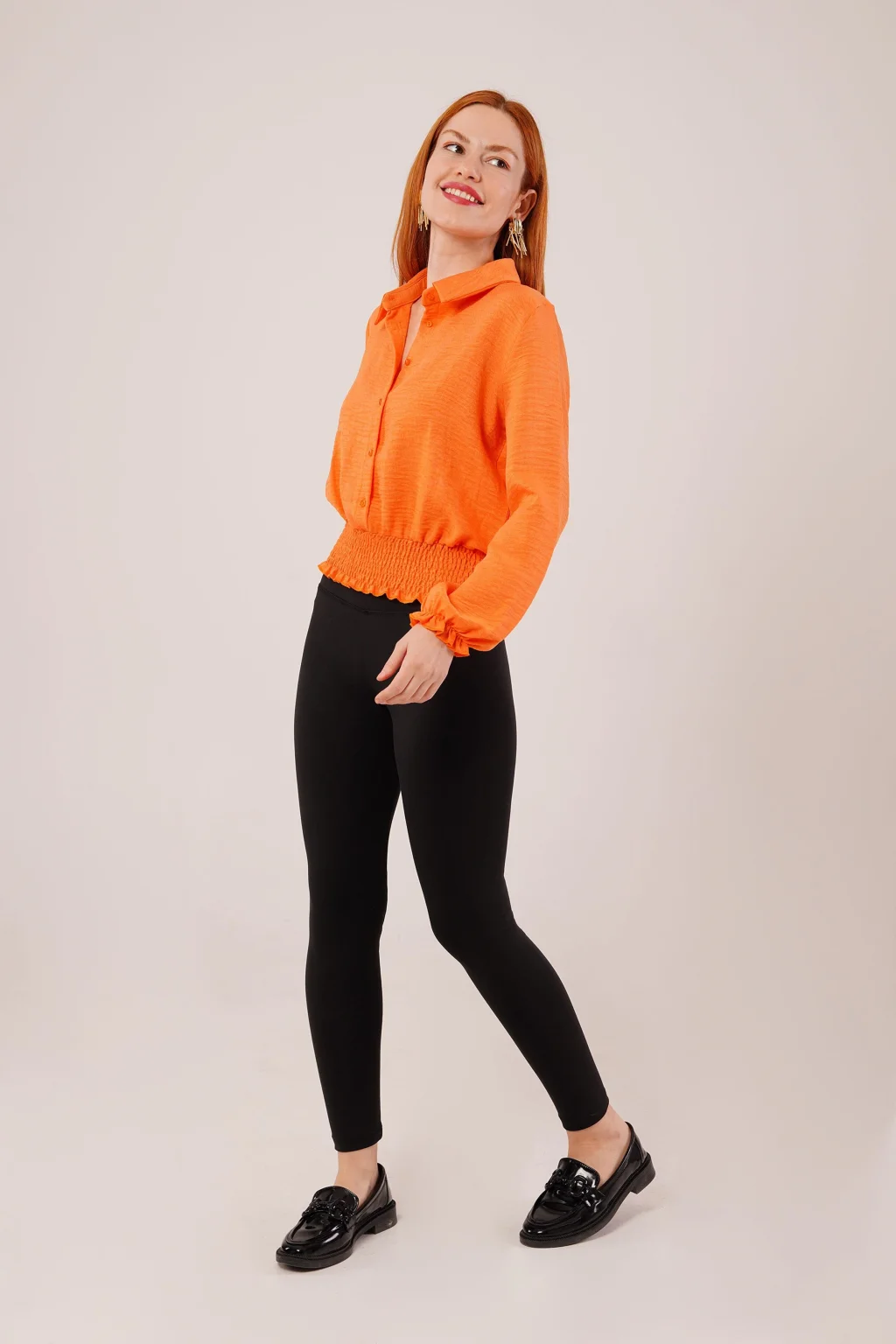 Bel Ve Bilek Lastikli Turuncu Bluz