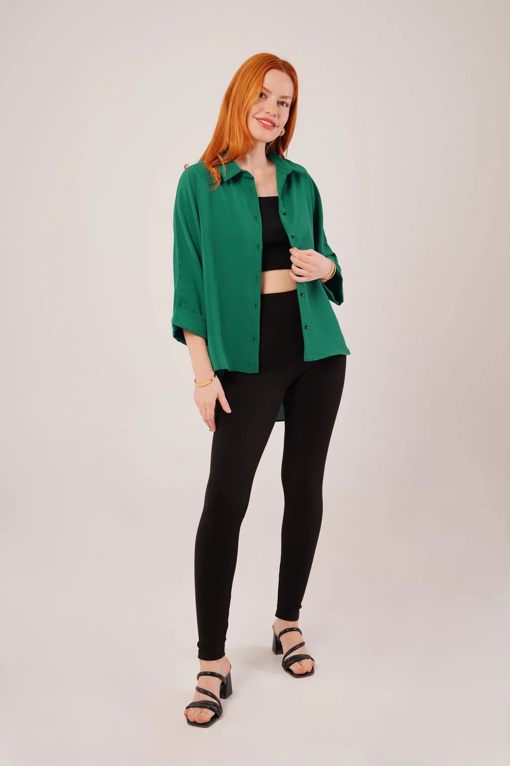 Kol Katlama Detaylı Zümrüt Yeşili Gömlek