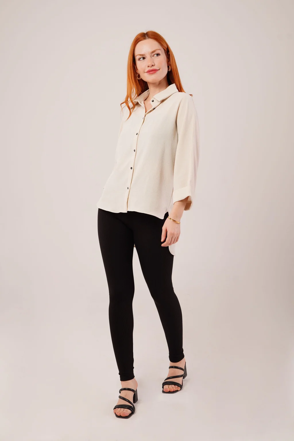 <p>Kol Katlama Detaylı Bej Gömlek</p><br> <p>Modelin Ölçüleri: Boy:165, Kg:55, Göğüs:90, Bel:72, Kalça: 100</p><br> <p>Modelin üzerindeki ürün M/38 bedendir</p><br> <ul> </ul>