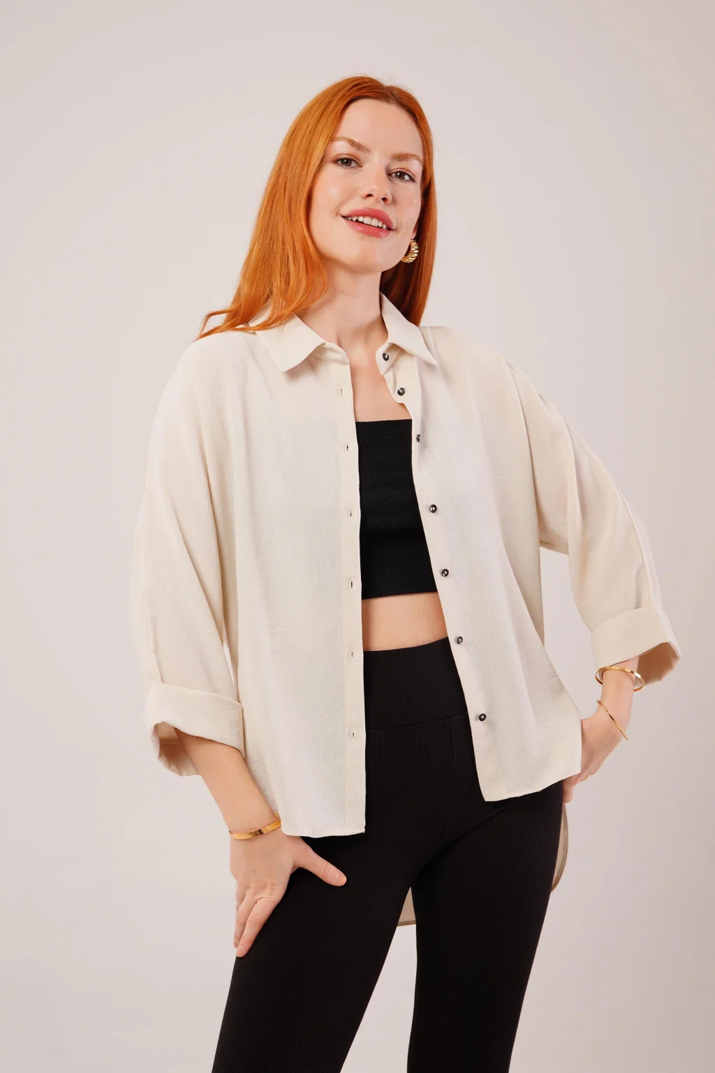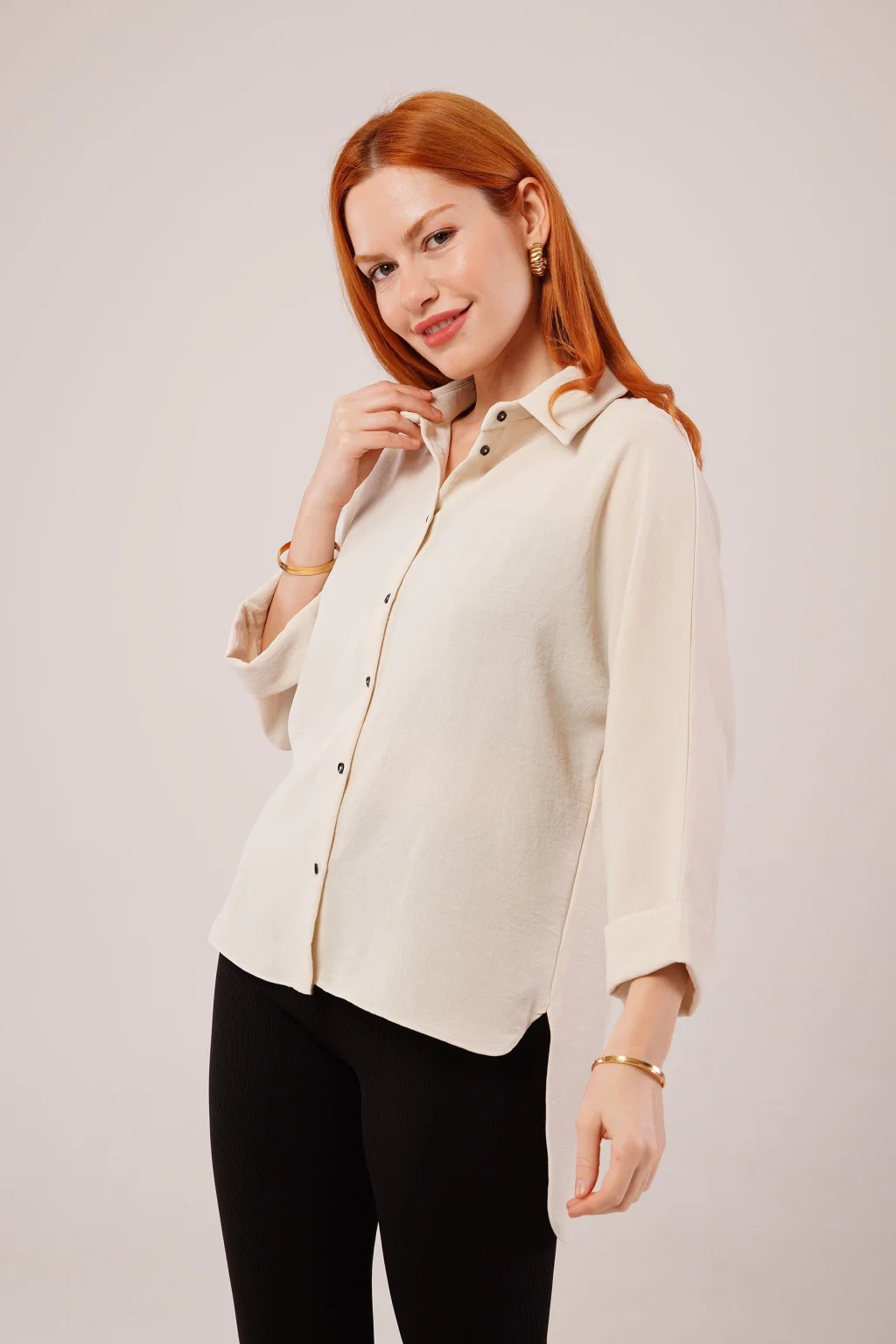 Kadın Dokuma Viskon Kumaş V Yaka Dekolte Ve Metal Düğme Detaylı Gömlek