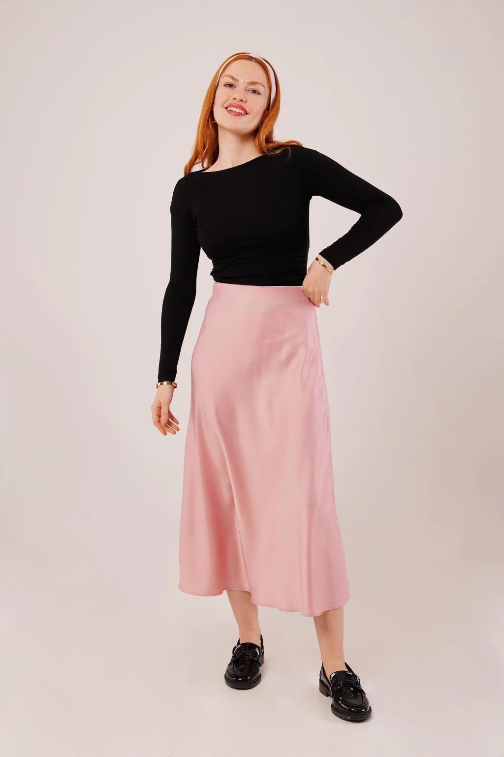Çan Kesim Midi Pembe Saten Etek