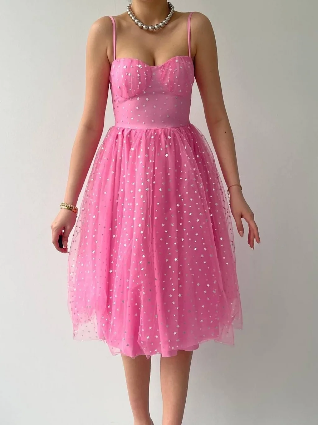 Kadın Kolları Tül Detay Omuz Dekolteli Diz üstü Kalem Elbise