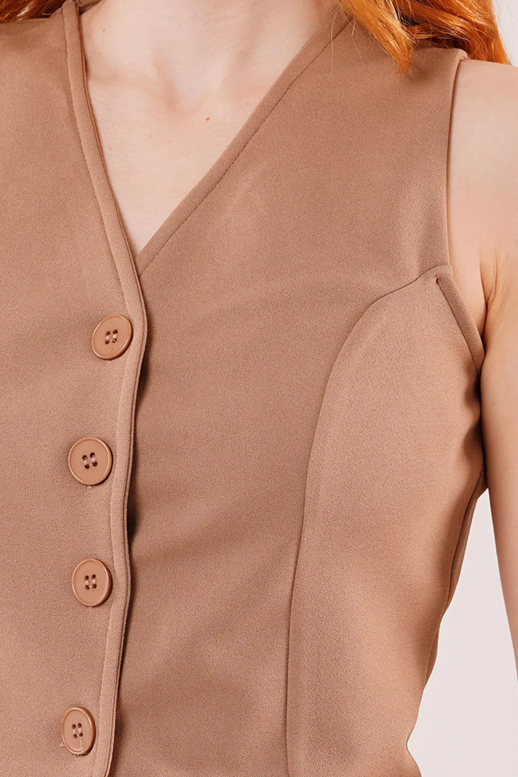 <p>Önü Düğmeli Camel Yelek</p><br> <p>Modelin Ölçüleri: Boy:165, Kg:55, Göğüs:90, Bel:72, Kalça: 100</p><br> <p>Modelin üzerindeki ürün M/38 bedendir</p><br> <ul> </ul>