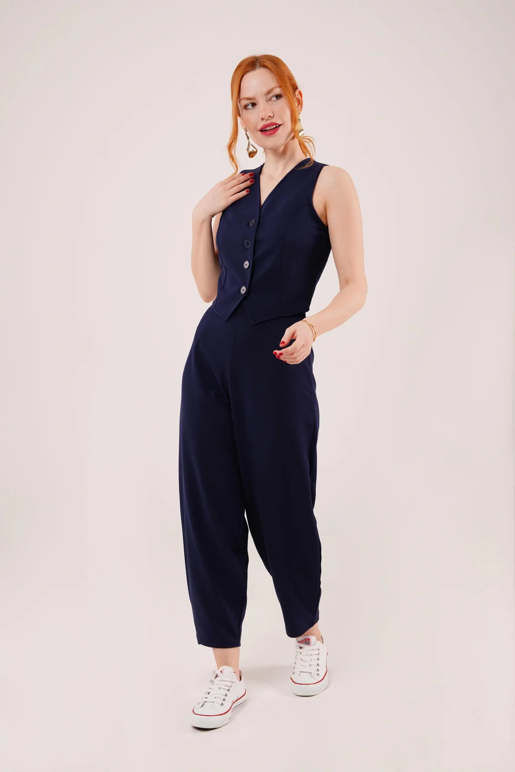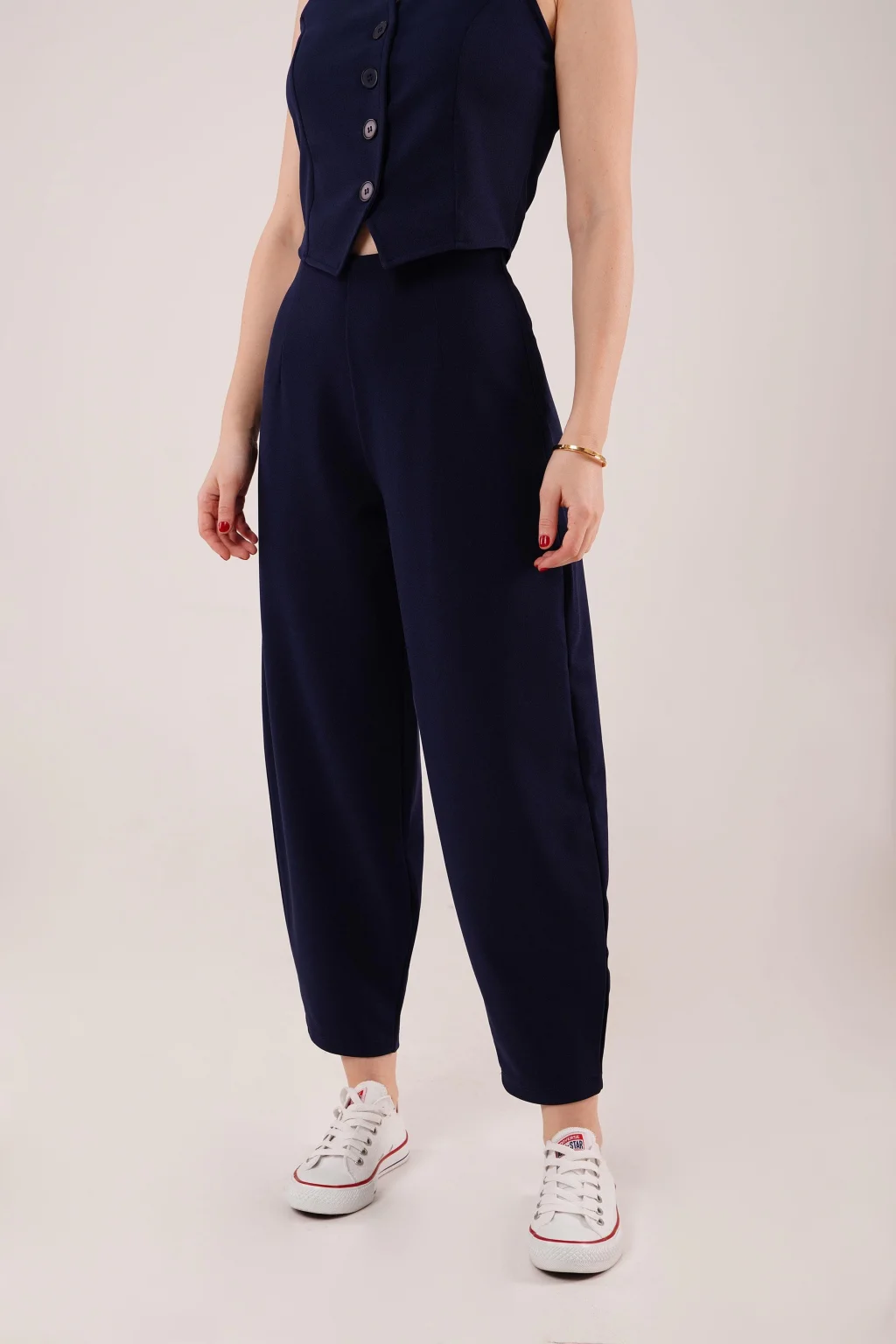 <p>Havuç Kesim Lacivert Pantolon</p><br> <p>Modelin Ölçüleri: Boy:165, Kg:55, Göğüs:90, Bel:72, Kalça: 100</p><br> <p>Modelin üzerindeki ürün M/38 bedendir</p><br> <ul> </ul>