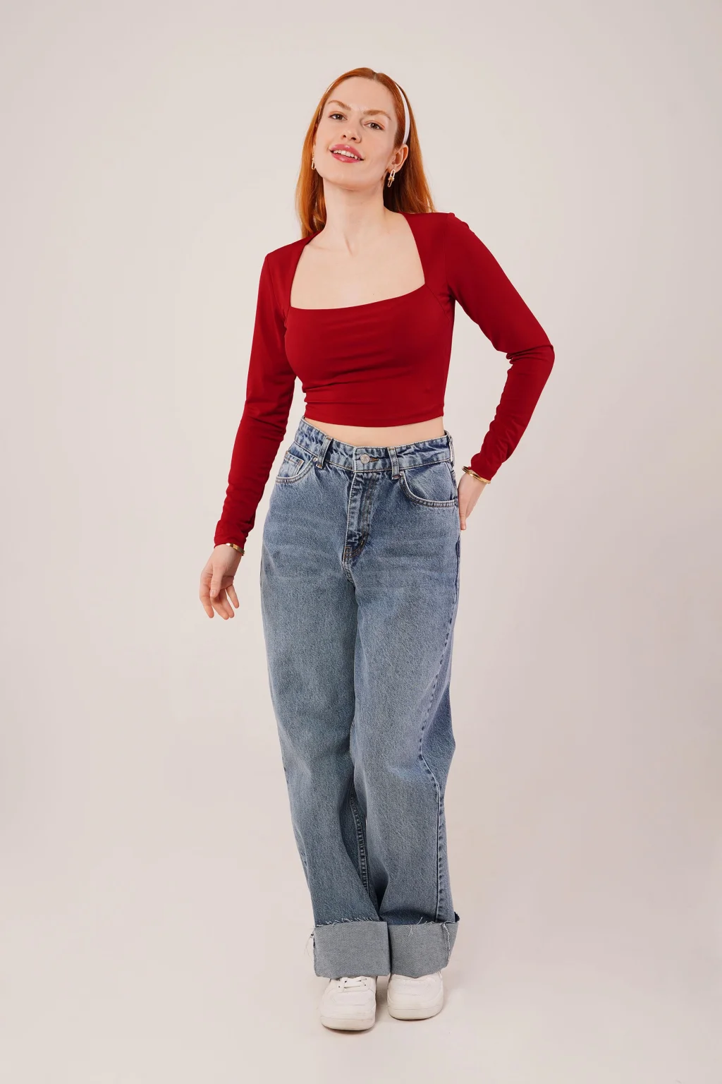 <p>Kare Yaka Basic Bordo Bluz</p><br> <p>Modelin Ölçüleri: Boy:165, Kg:55, Göğüs:90, Bel:72, Kalça: 100</p><br> <p>Modelin üzerindeki ürün M/38 bedendir</p><br> <ul> </ul>