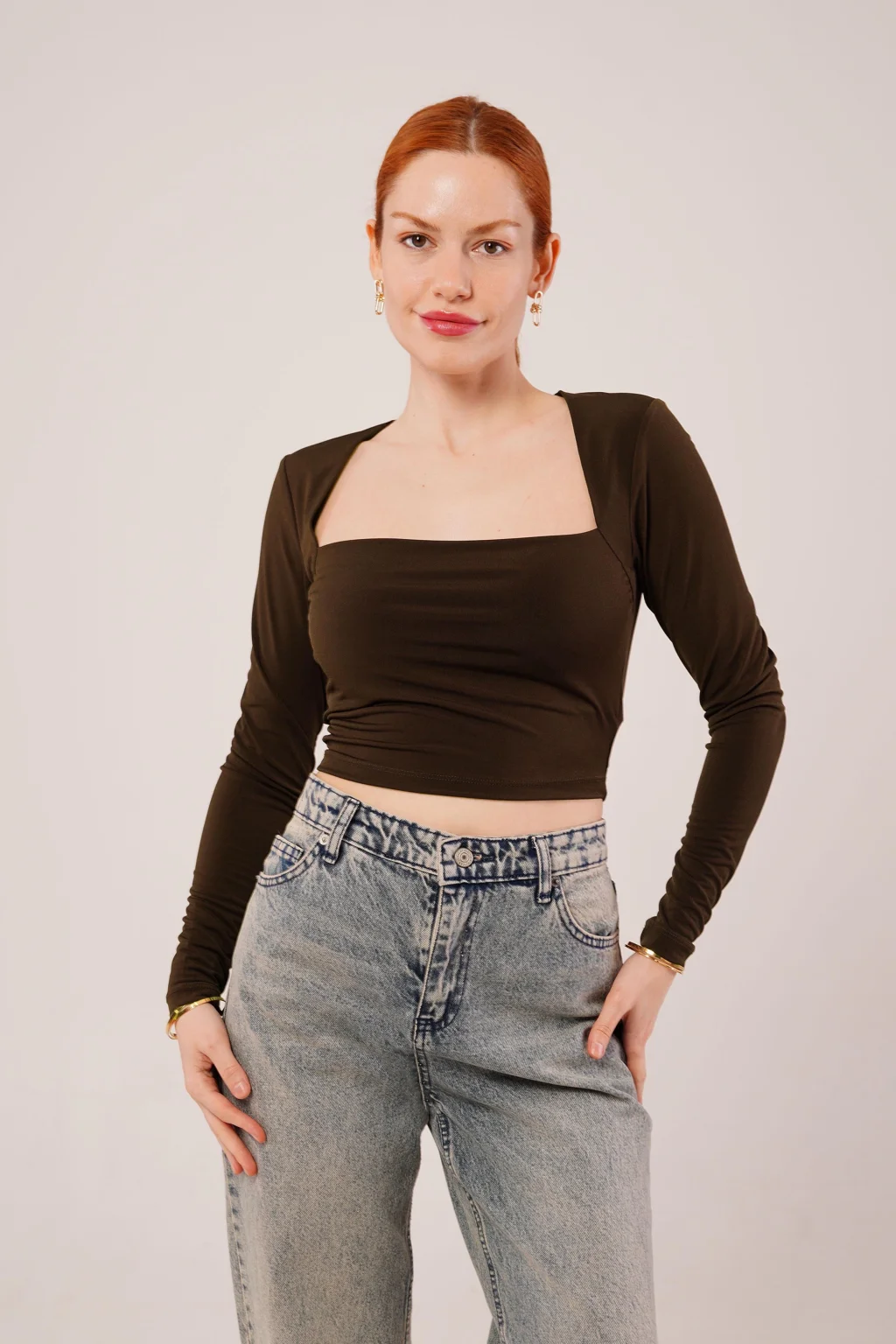 <p>Kare Yaka Basic Kahverengi Bluz</p><br> <p>Modelin Ölçüleri: Boy:165, Kg:55, Göğüs:90, Bel:72, Kalça: 100</p><br> <p>Modelin üzerindeki ürün M/38 bedendir</p><br> <ul> </ul>