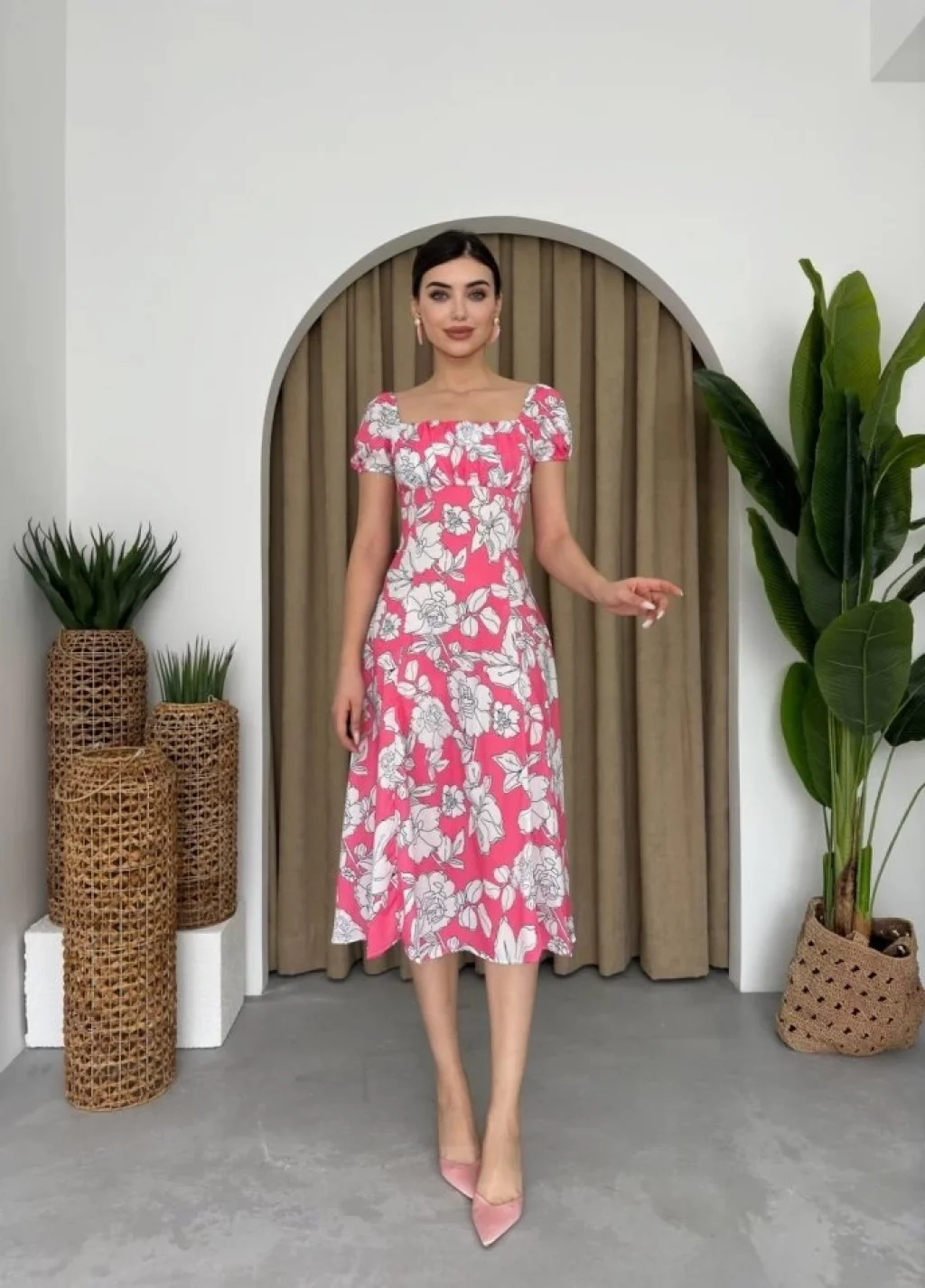 <p>Kare Yaka Çiçekli Elbise</p><br> <p>Modelin Ölçüleri: Boy:165, Kg:55, Göğüs:90, Bel:72, Kalça: 100</p><br> <p>Modelin üzerindeki ürün M/38 bedendir</p><br> <ul> </ul>