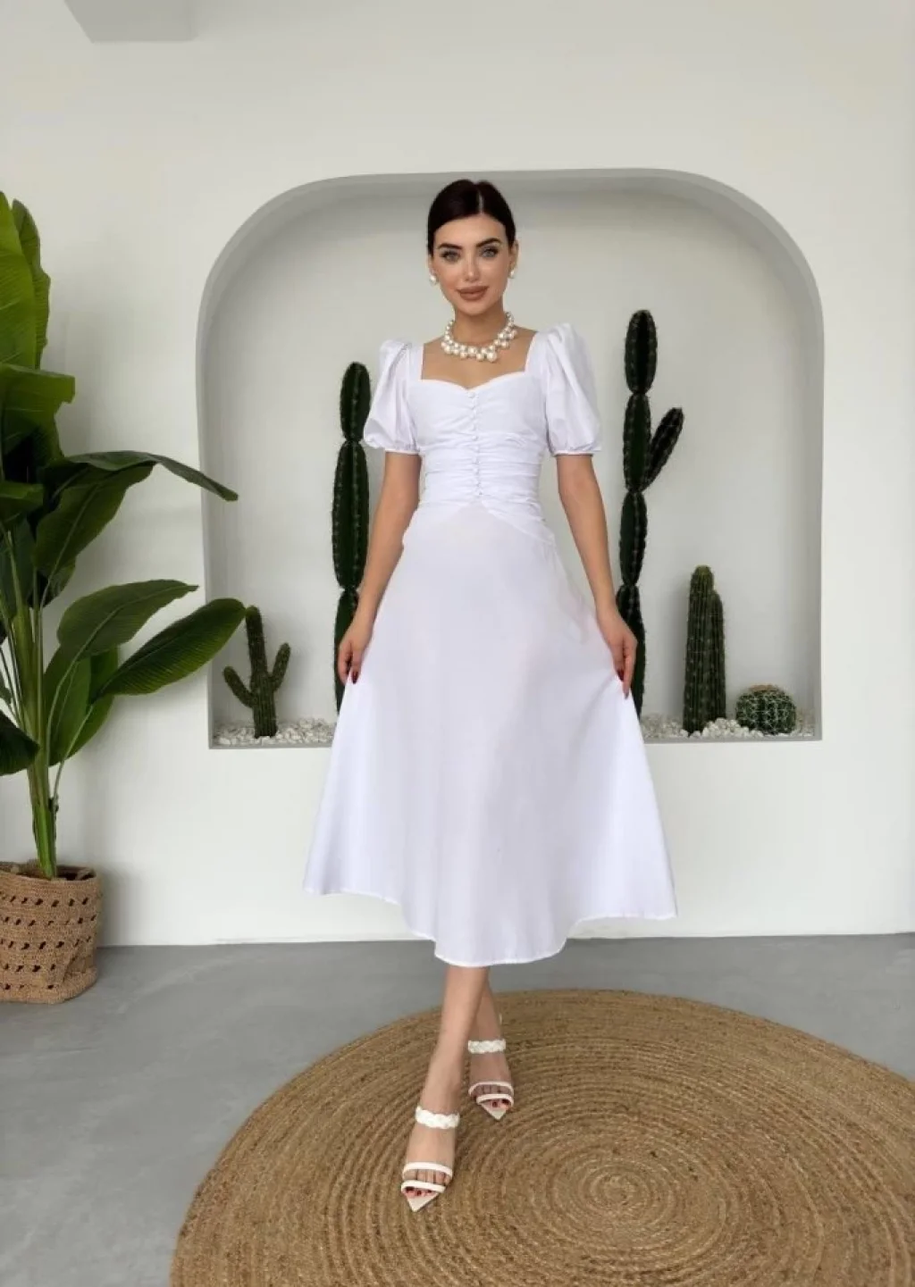 <p>Kare Yaka Düğmeli Elbise</p><br> <p>Modelin Ölçüleri: Boy:165, Kg:55, Göğüs:90, Bel:72, Kalça: 100</p><br> <p>Modelin üzerindeki ürün M/38 bedendir</p><br> <ul> </ul>