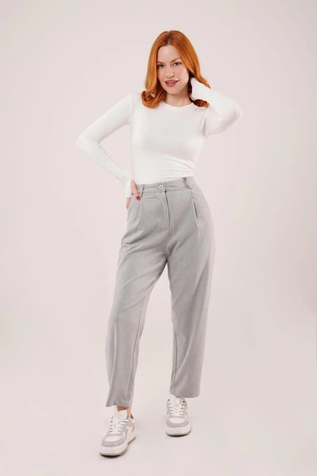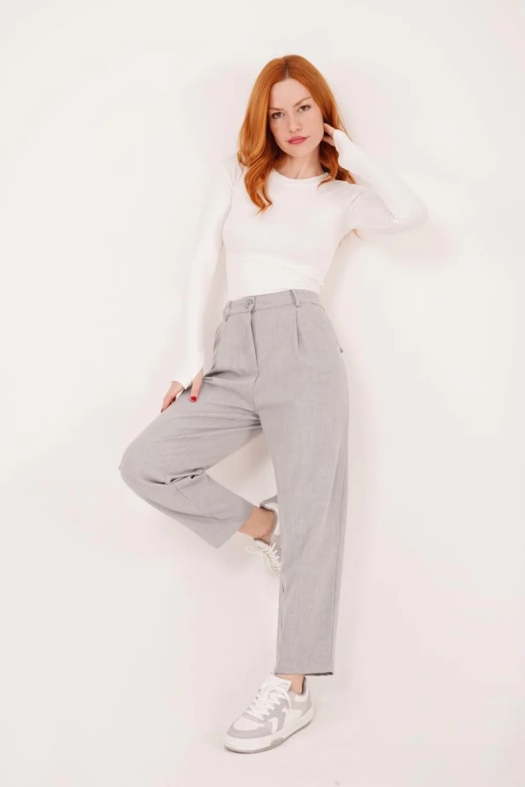 Kadın Yüksek Bel önden Zincir Detaylı Ithal Krep Pantolon