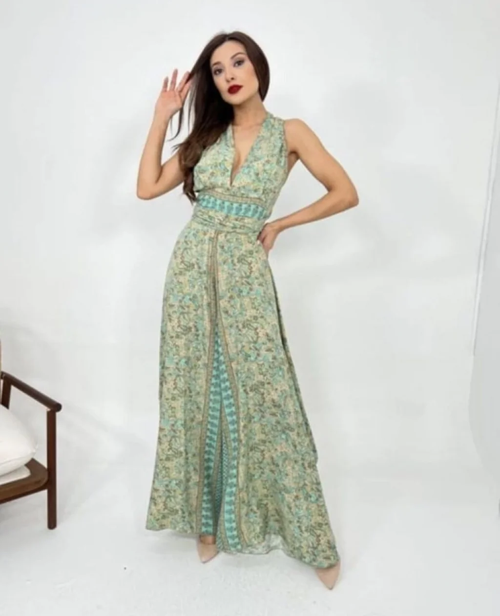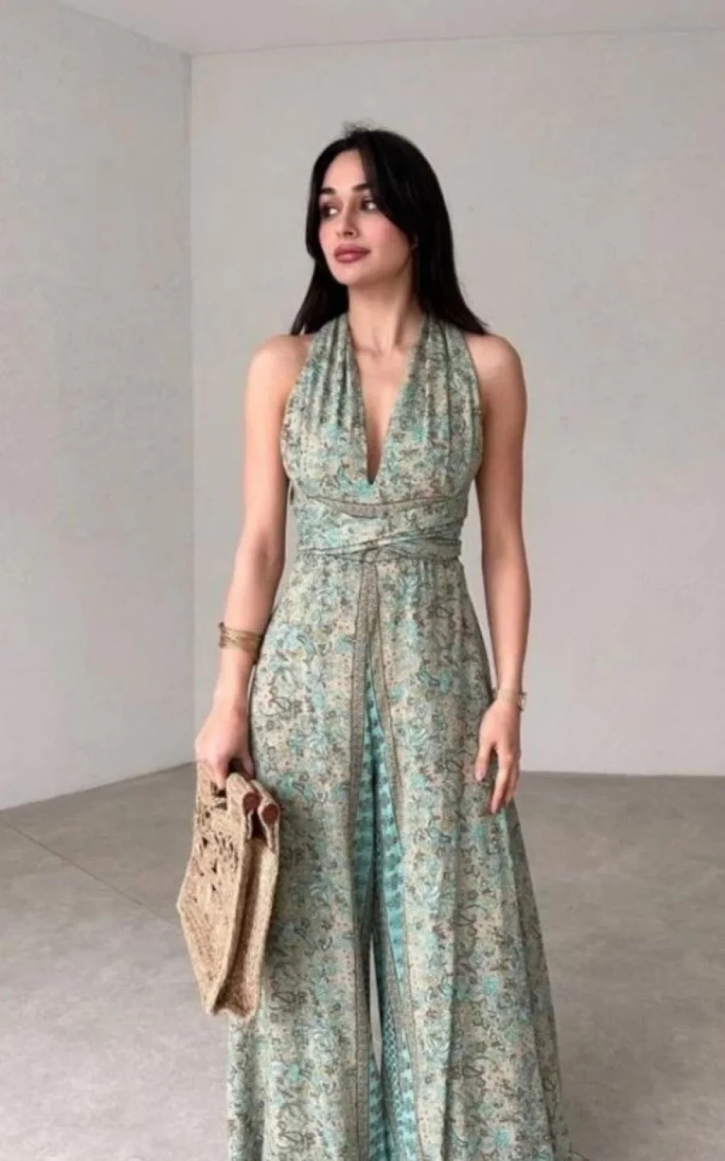 Kadın Askılı Yandan Fermuarlı Geniş Paçalı Valencia Tulum