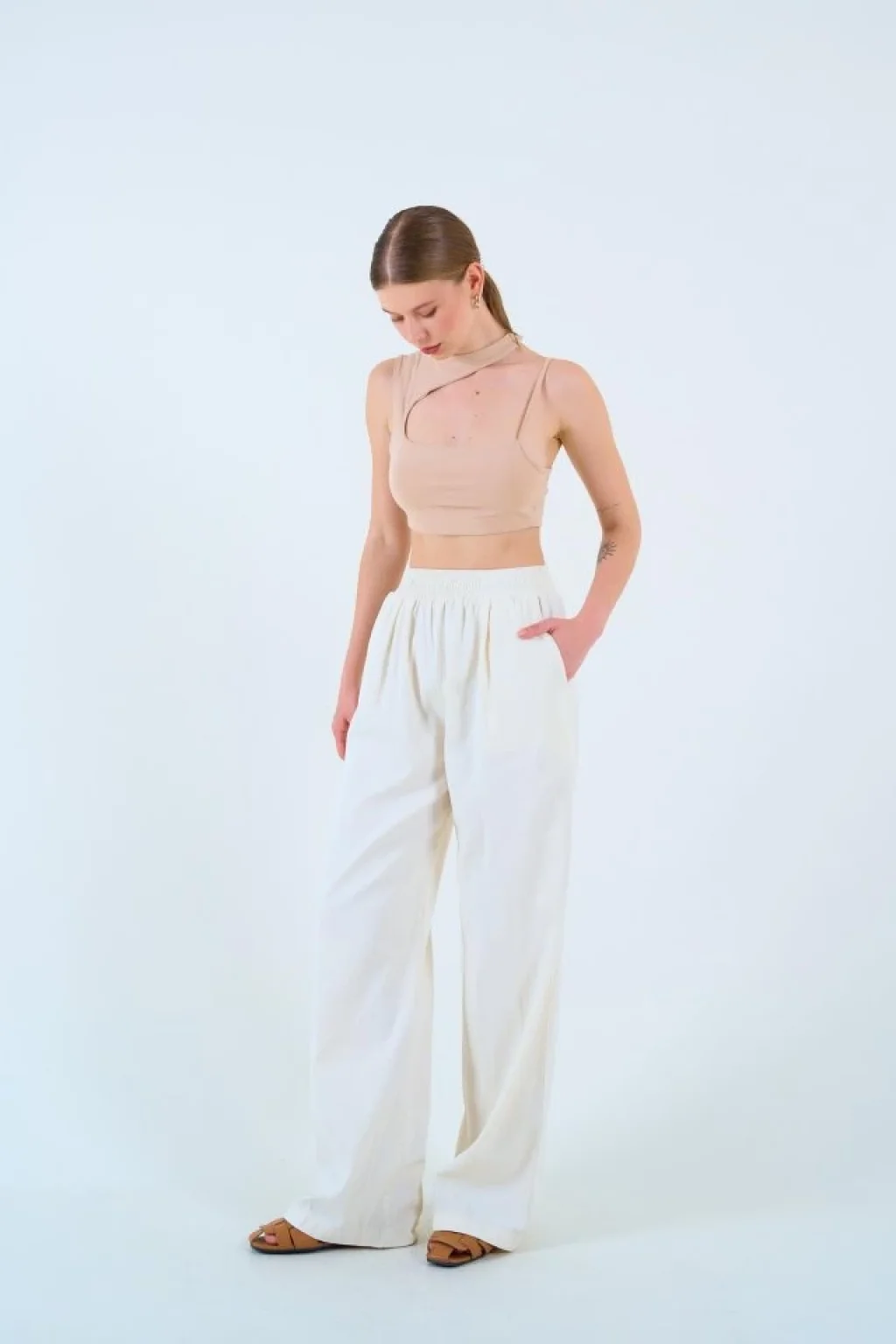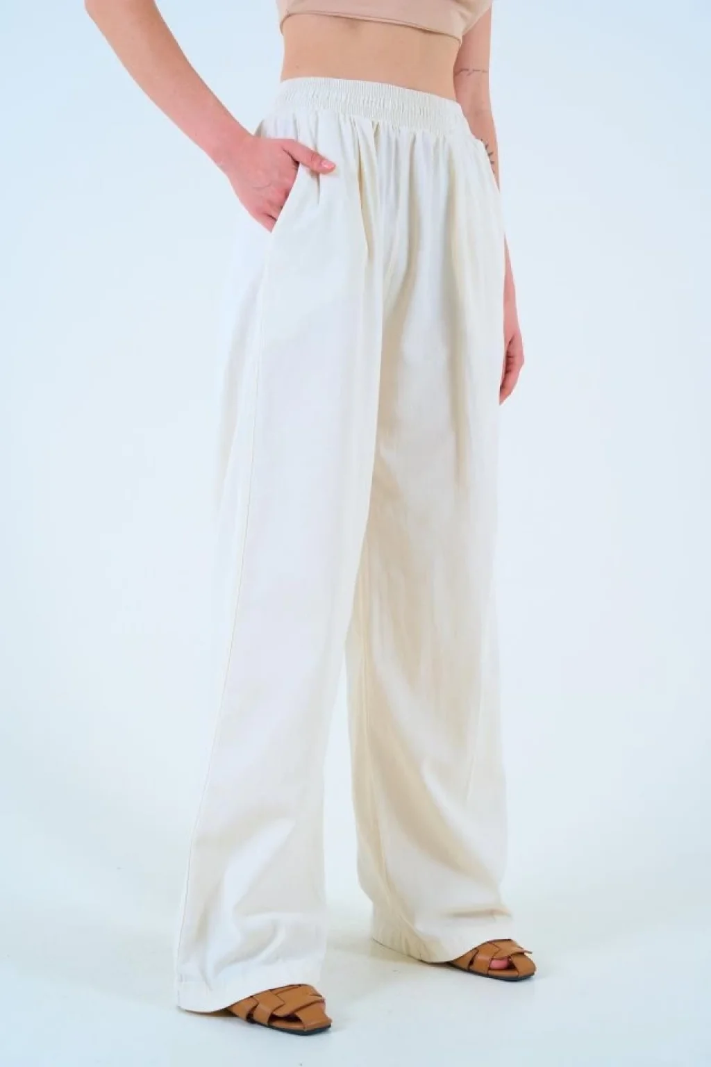 <p>Beli Lastikli Palazo Pantolon - Taş</p><br> <p>Modelin Ölçüleri: Boy:165, Kg:55, Göğüs:90, Bel:72, Kalça: 100</p><br> <p>Modelin üzerindeki ürün M/38 bedendir</p><br> <ul> </ul>