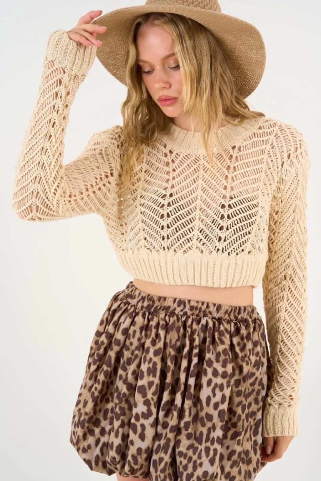 Kadın Uzun Kollu Omuzlardan Açık Askılı Yuvarlak Yaka Triko Bluz