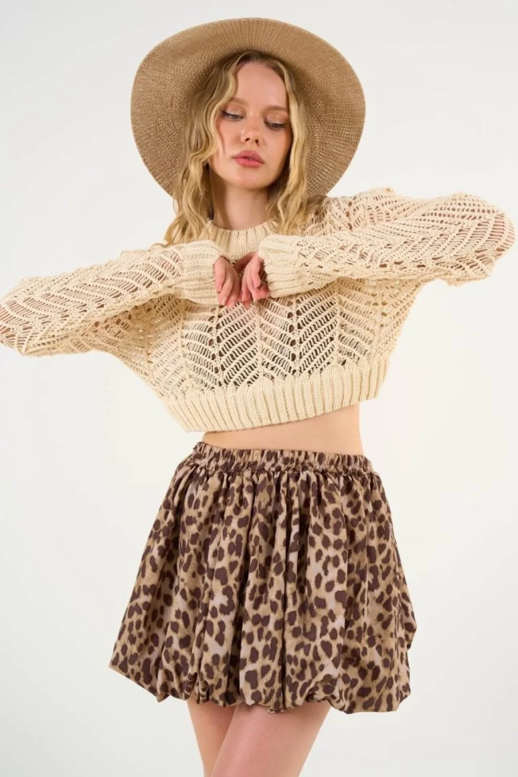 Kadın Uzun Kollu Yarı Balıkçı Yaka Leopar Detaylı Kaşkorse Bluz