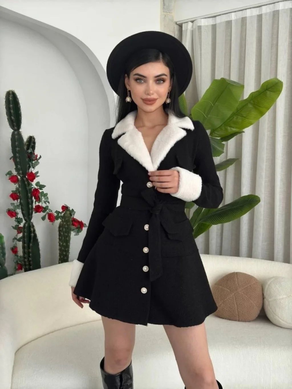 Kadın Uzun Kollu Bisiklet Yaka Kısa Viskon Iki Iplik Elbise