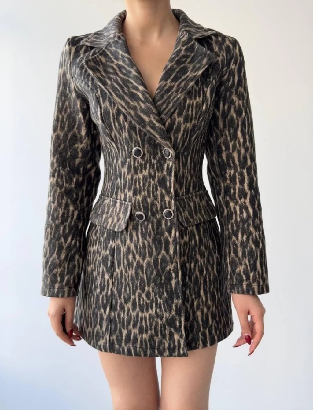 Kadın Uzun Kollu Yarı Balıkçı Yaka Leopar Detaylı Kaşkorse Bluz