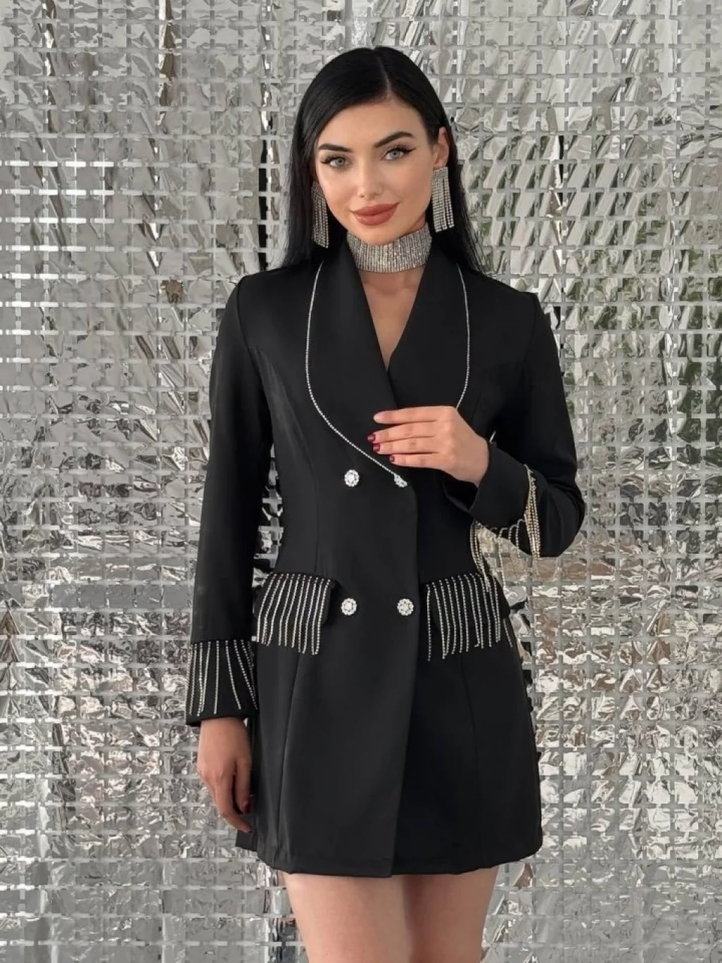 <p>Girona Taşlı Ceket Elbise</p><br> <p>Modelin Ölçüleri: Boy:165, Kg:55, Göğüs:90, Bel:72, Kalça: 100</p><br> <p>Modelin üzerindeki ürün M/38 bedendir</p><br> <ul> </ul>