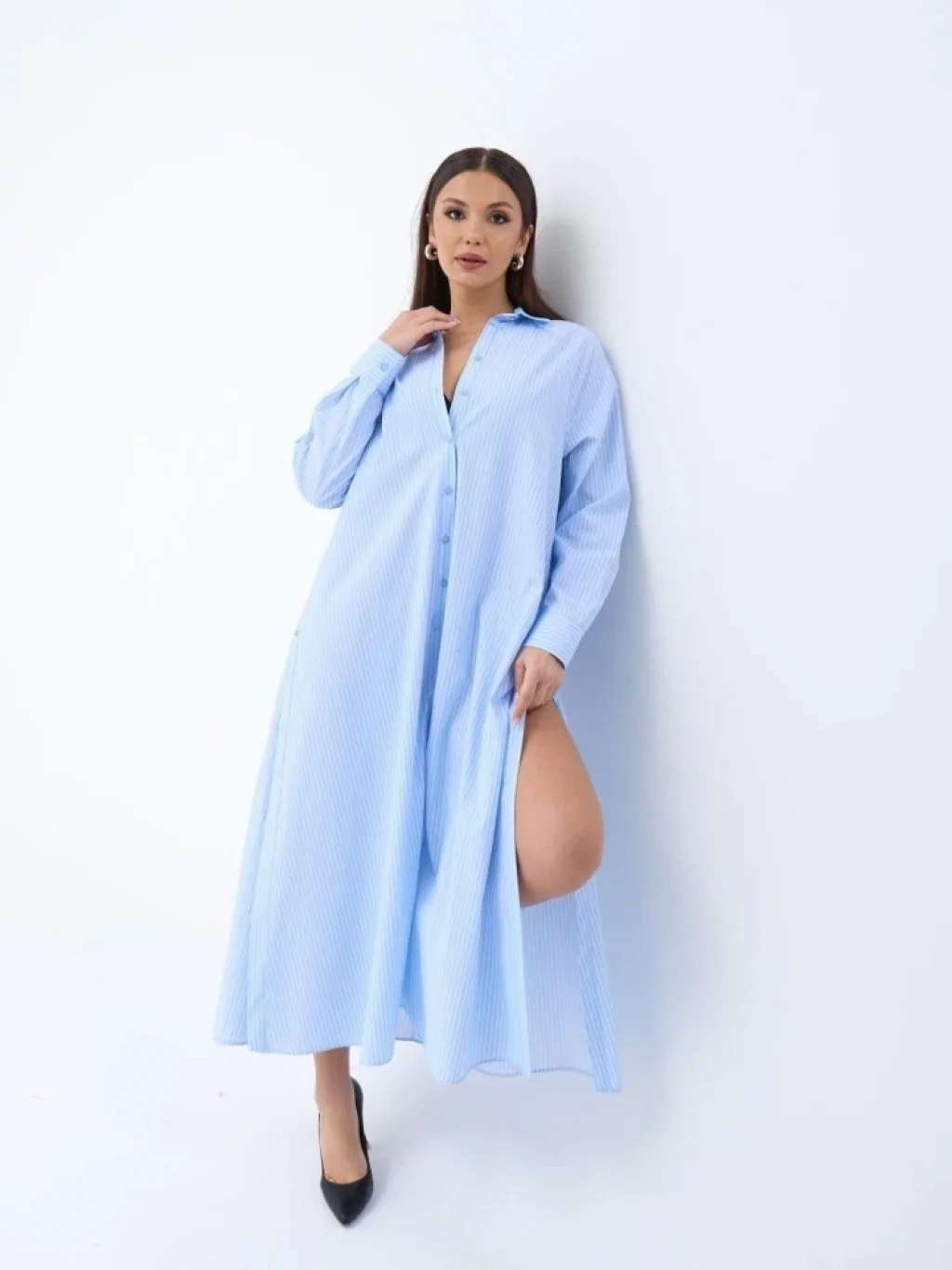 Kadın Uzun Kollu Balıkçı Yaka Yırtmaçlı Düğmeli şardonlu Kaşkorse Elbise