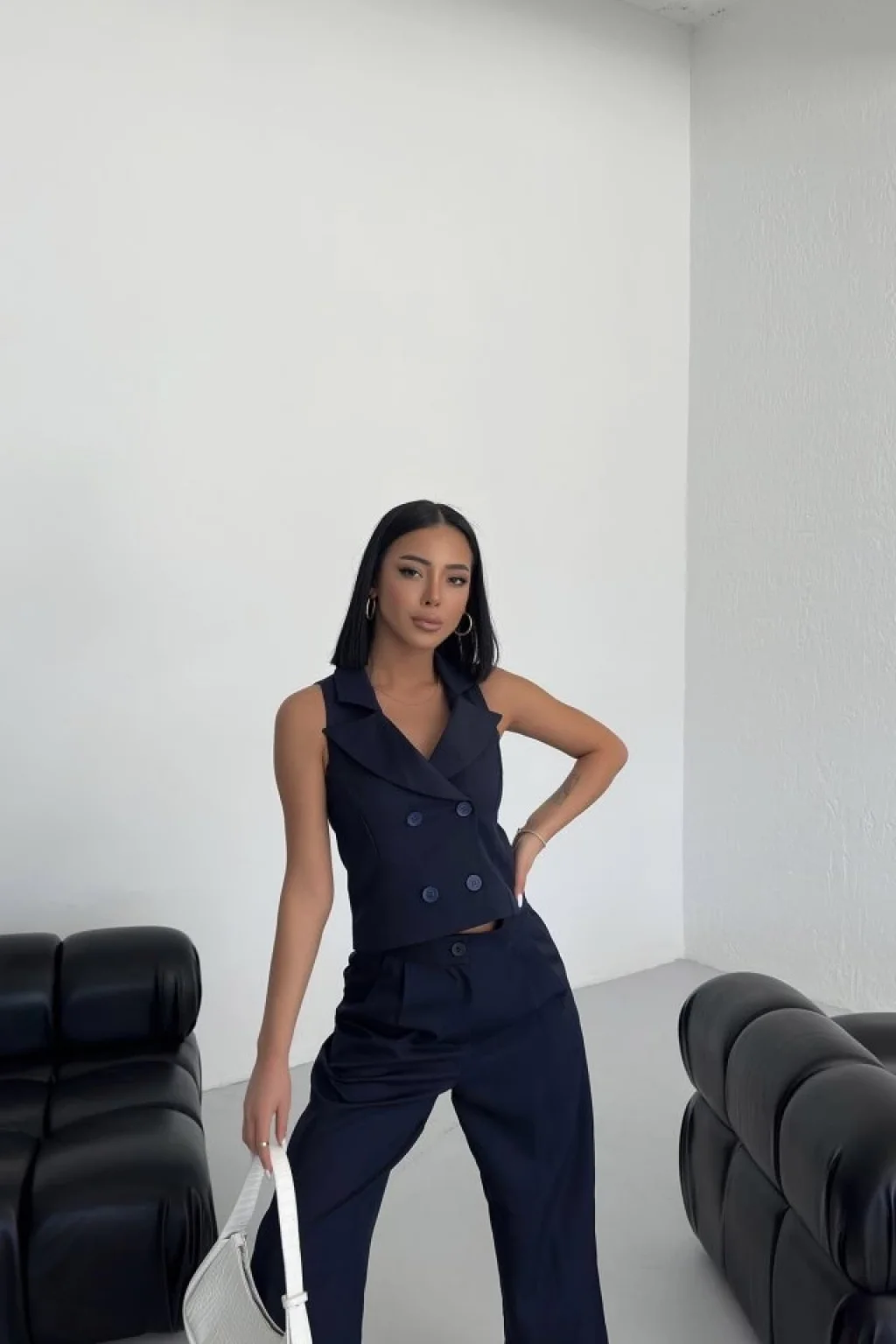 KETEN YELEK - ŞORT TAKIM - Mavi