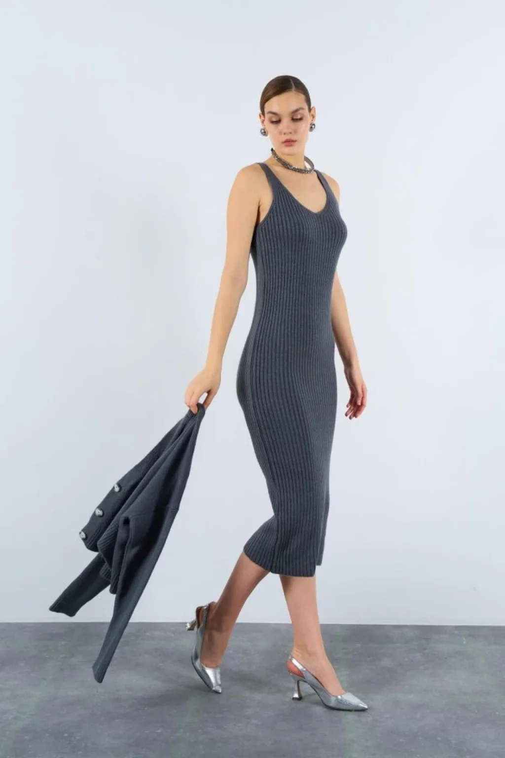 <p>Fitilli Elbise Hırkalı Takım - Füme</p><br> <p>Modelin Ölçüleri: Boy:165, Kg:55, Göğüs:90, Bel:72, Kalça: 100</p><br> <p>Modelin üzerindeki ürün M/38 bedendir</p><br> <ul> </ul>