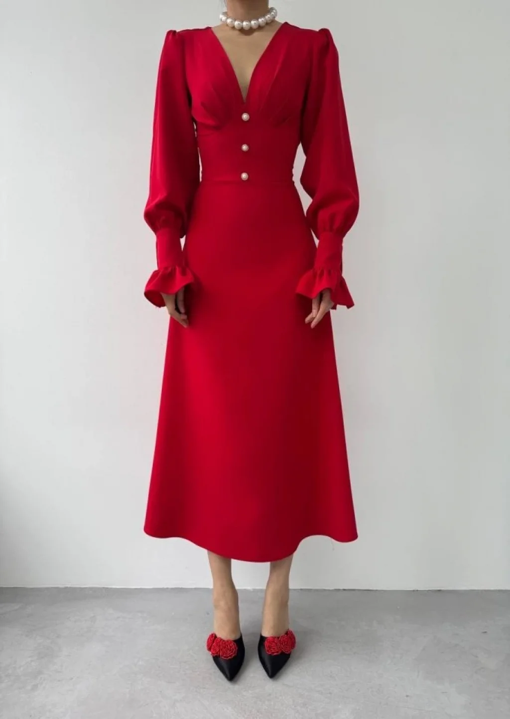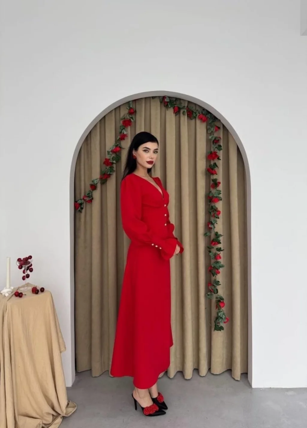 <p>Meta Düğme Detaylı Elbise</p><br> <p>Modelin Ölçüleri: Boy:165, Kg:55, Göğüs:90, Bel:72, Kalça: 100</p><br> <p>Modelin üzerindeki ürün M/38 bedendir</p><br> <ul> </ul>