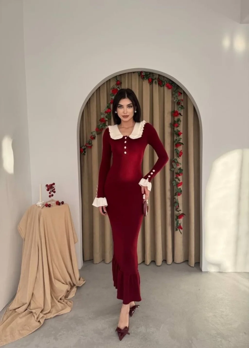<p>Sura Bebe Yaka Elbise</p><br> <p>Modelin Ölçüleri: Boy:165, Kg:55, Göğüs:90, Bel:72, Kalça: 100</p><br> <p>Modelin üzerindeki ürün M/38 bedendir</p><br> <ul> </ul>