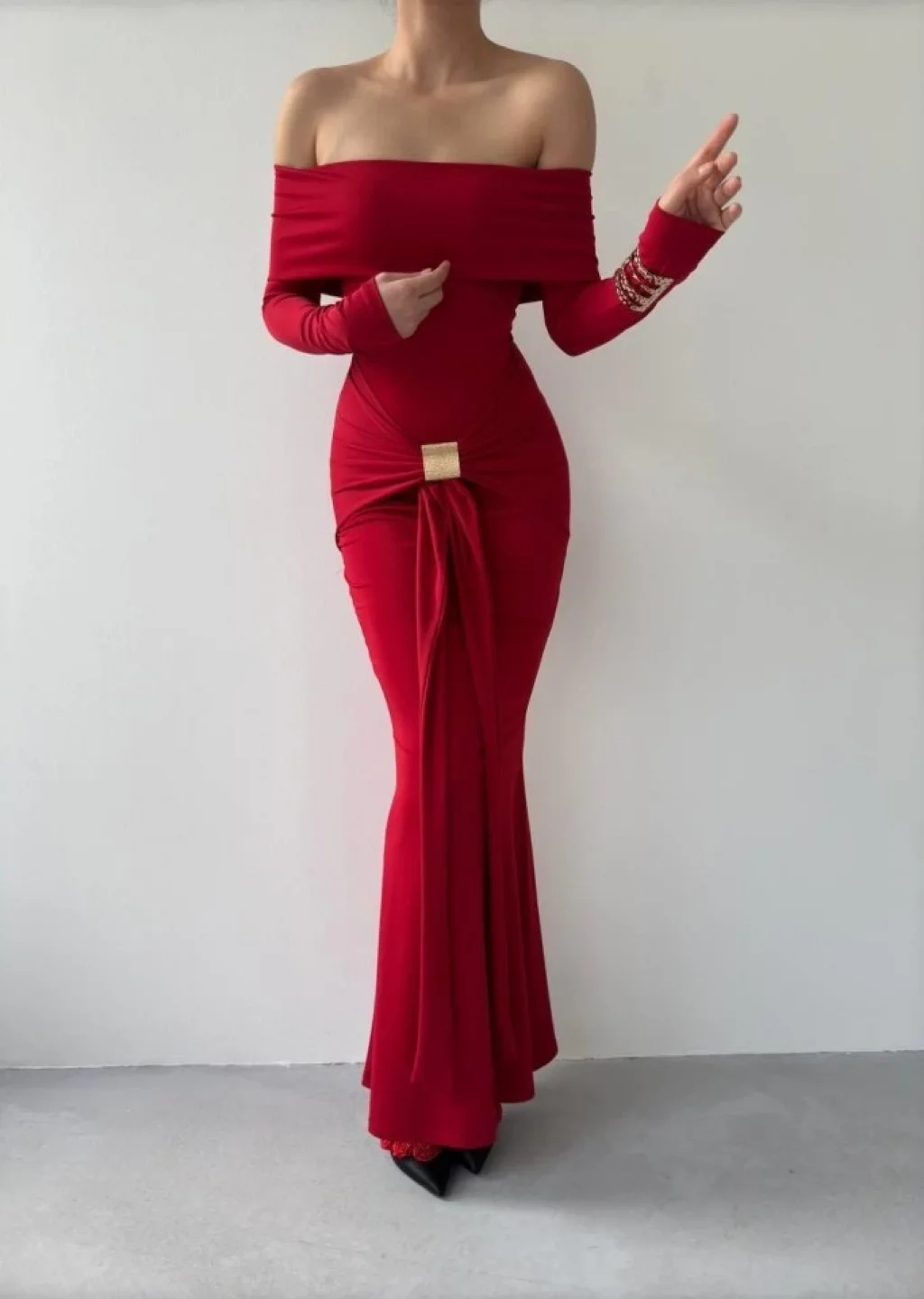 Kadın Uzun Kollu Balıkçı Yaka Uzun Akrilik Elbise