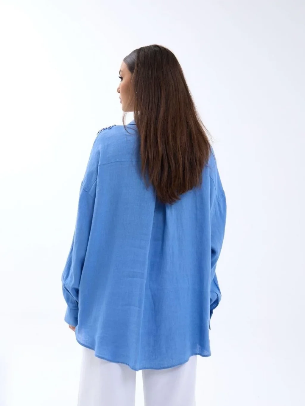 <p>7399 GÖMLEK-MAVİ</p><br> <p>Modelin Ölçüleri: Boy:165, Kg:55, Göğüs:90, Bel:72, Kalça: 100</p><br> <p>Modelin üzerindeki ürün M/38 bedendir</p><br> <ul> </ul>